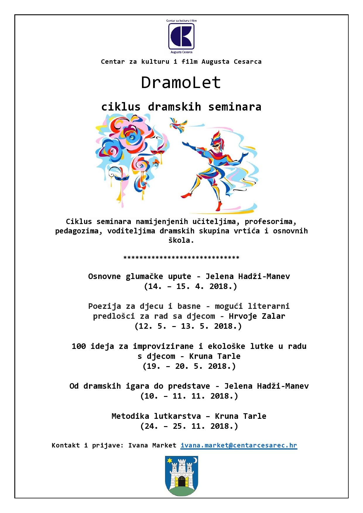 Kontakt i prijave: Ivana Market ivana.market@centarcesarec.hr