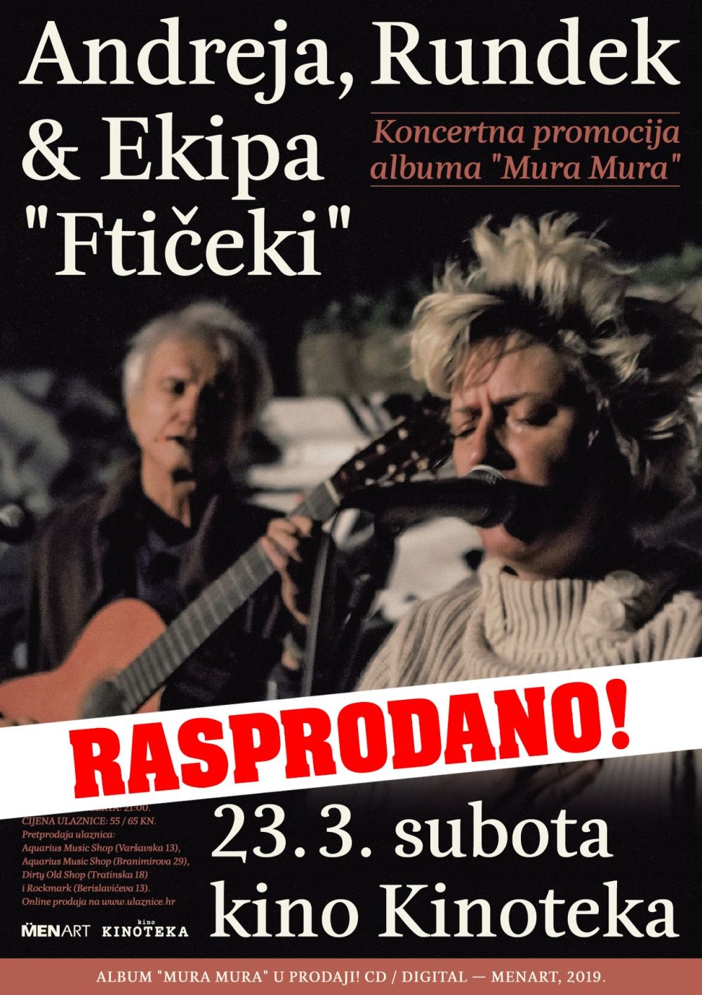 Ovu subotu, 23.3. s početkom u 21 sat, Rundek & Ekipa “Ftičeki”, na rasprodanom koncertu u kinu Kinoteka, predstavit će svoj aktualni album “Mura Mura“.