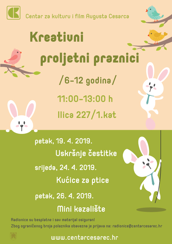 Centar za kulturu i film Augusta Cesarca organizira besplatne kreativne radionice tijekom proljetnih školskih praznika!