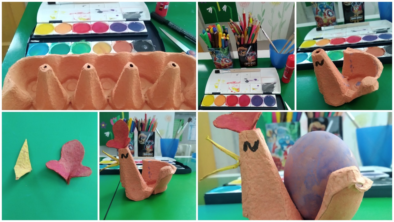 Za izradu vam je potrebno: kartonska kutija od jaja, vodene bojice, flomasteri, škare, ljepilo.