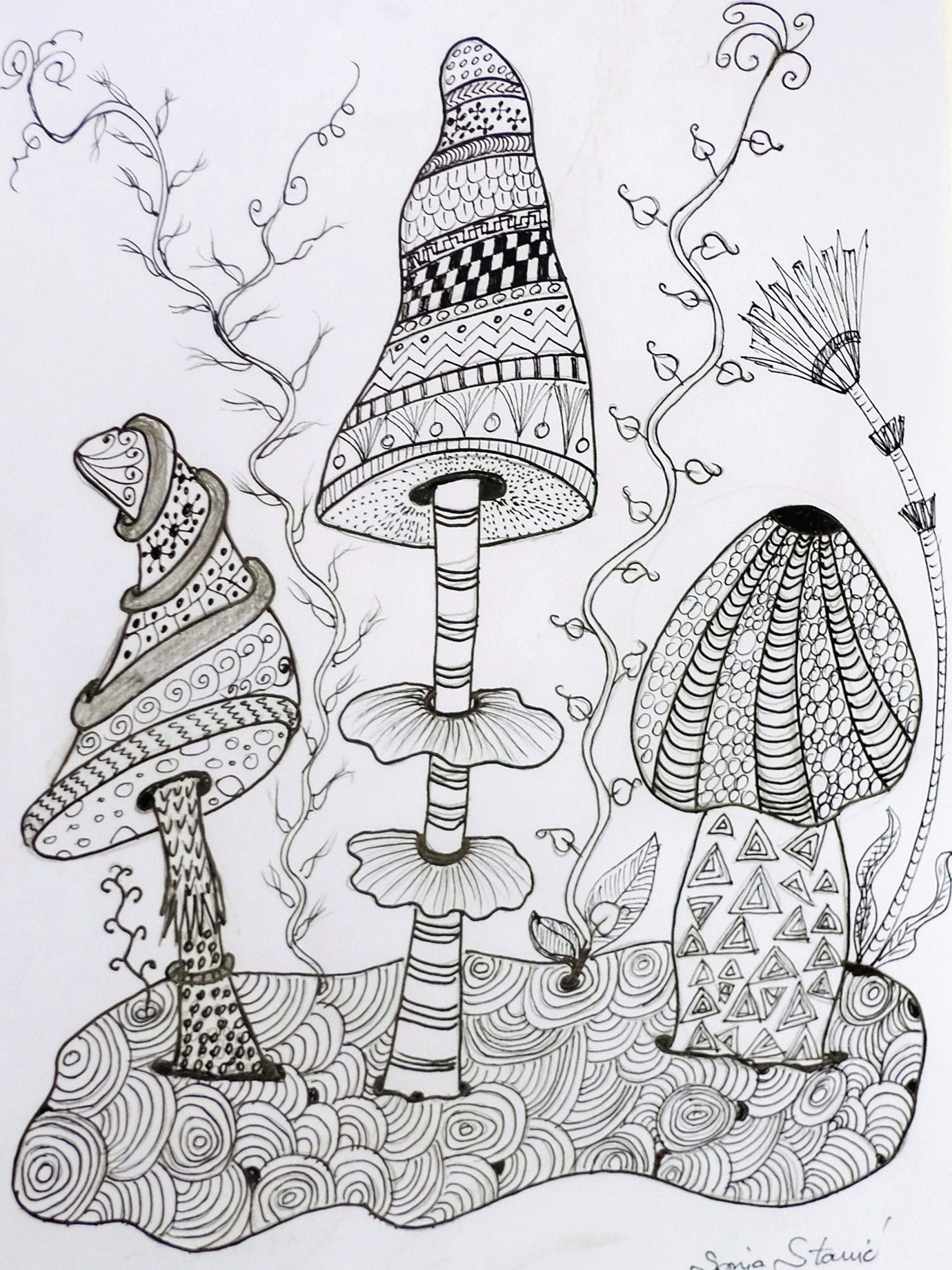 tehnike kao što su olovke u boji, flomasteri, tuš, pastele, ugljen, akvarel,