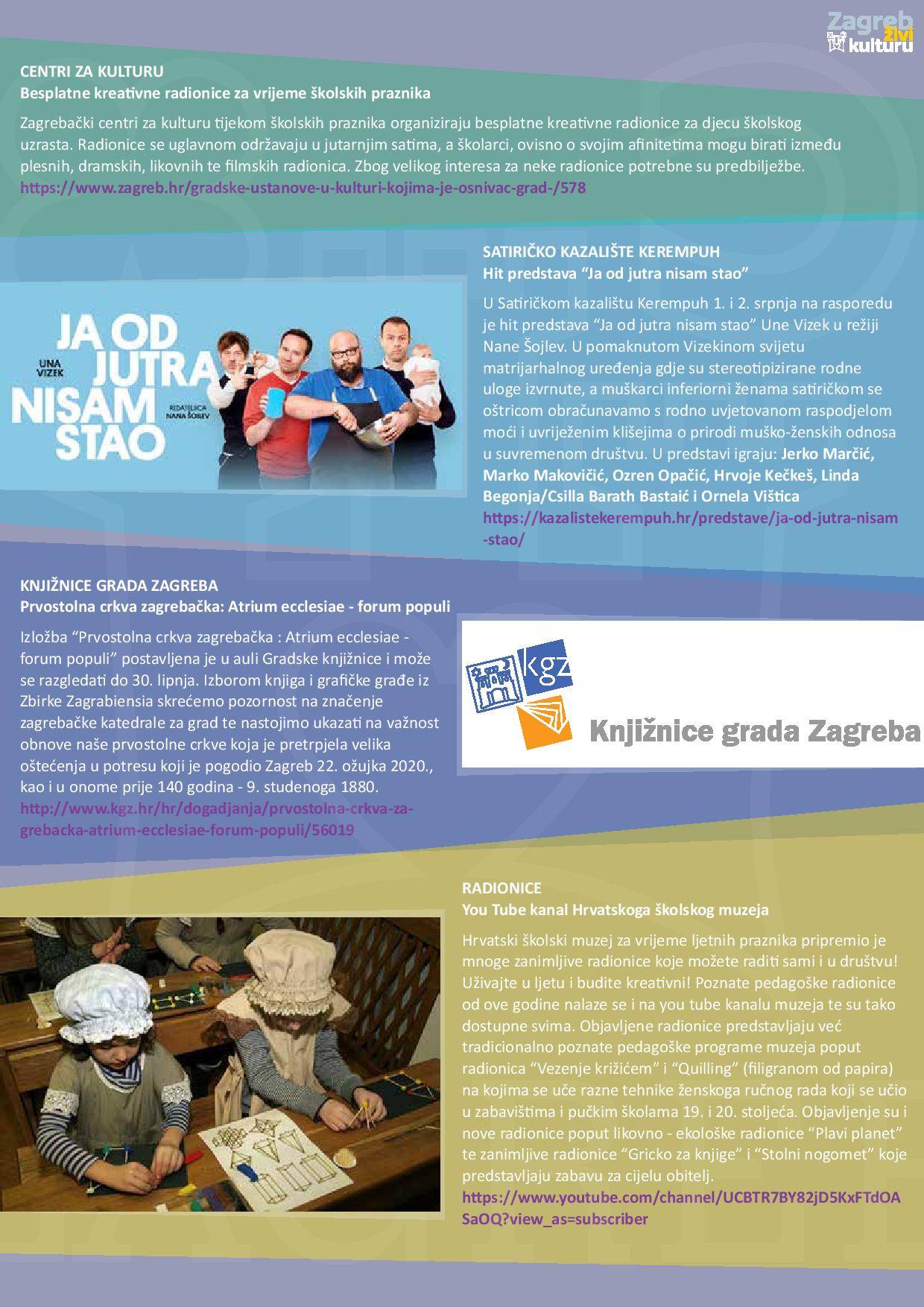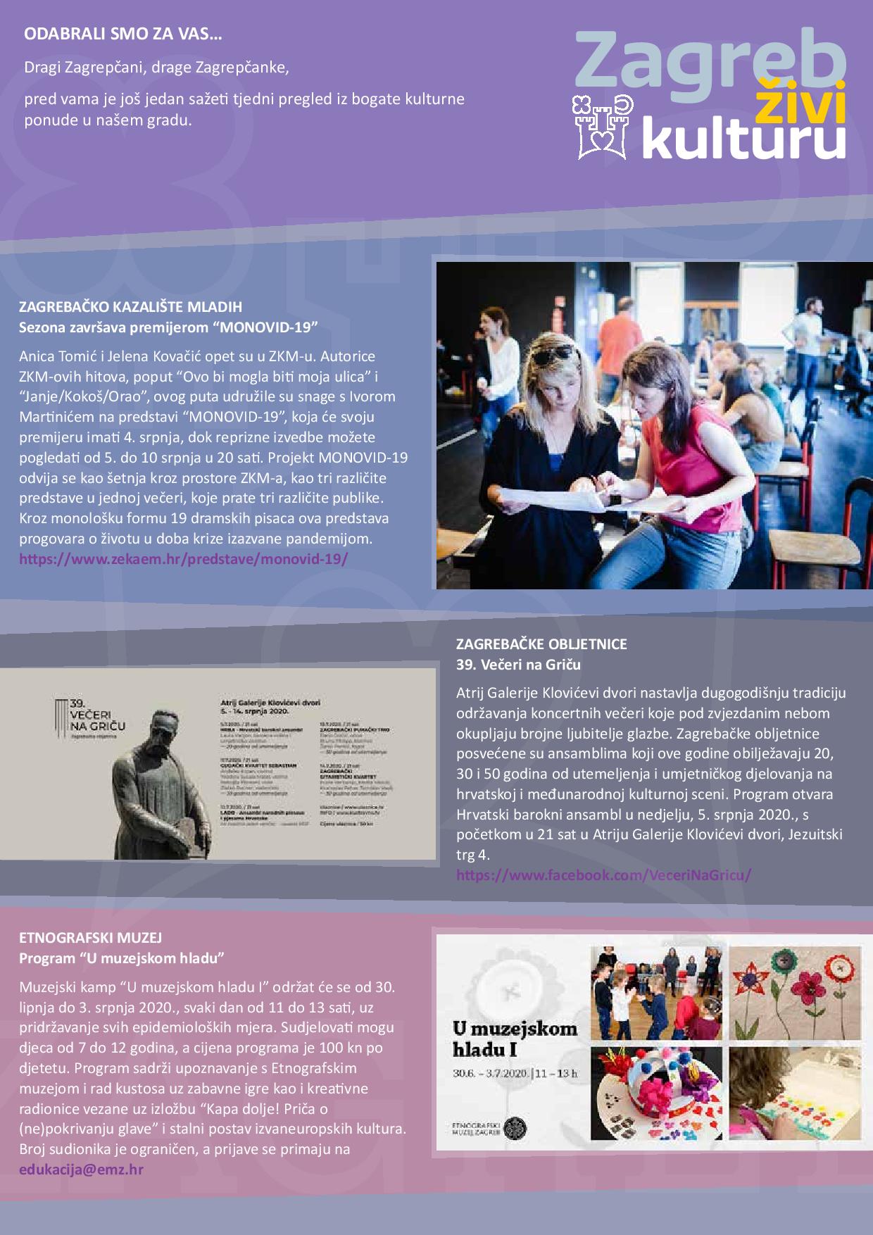 Zagreb živi kulturu – tjedni pregled kulturne ponude za razdoblje od 29.6. do 5.7. 2020.