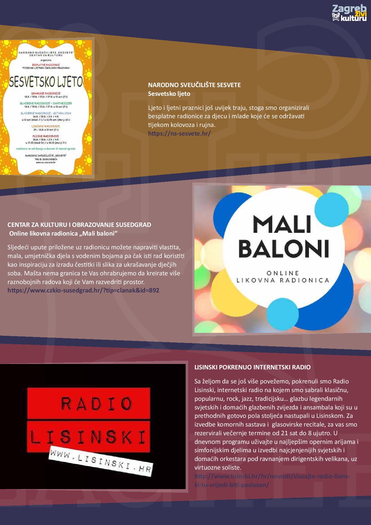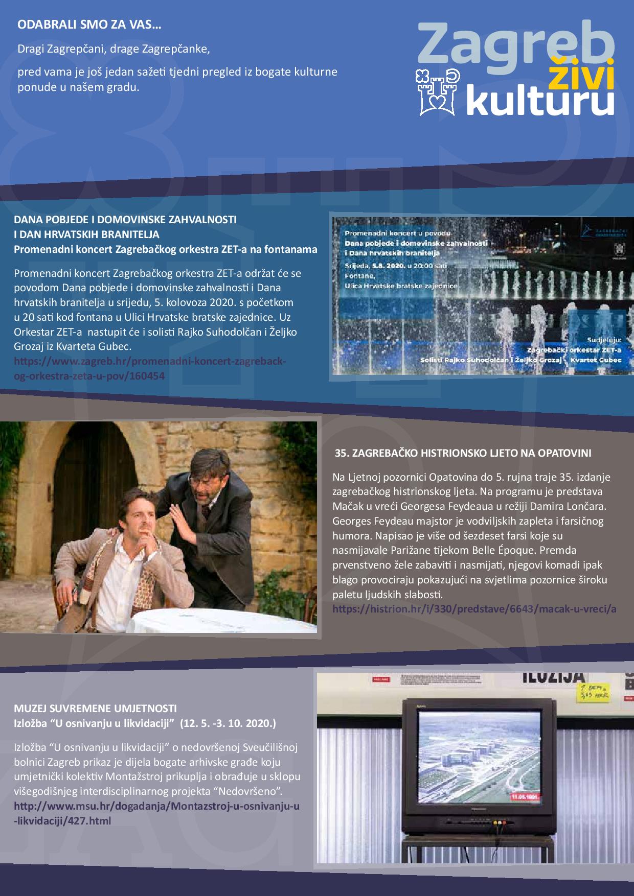 Zagreb živi kulturu – pregled kulturne ponude za mjesec kolovoz