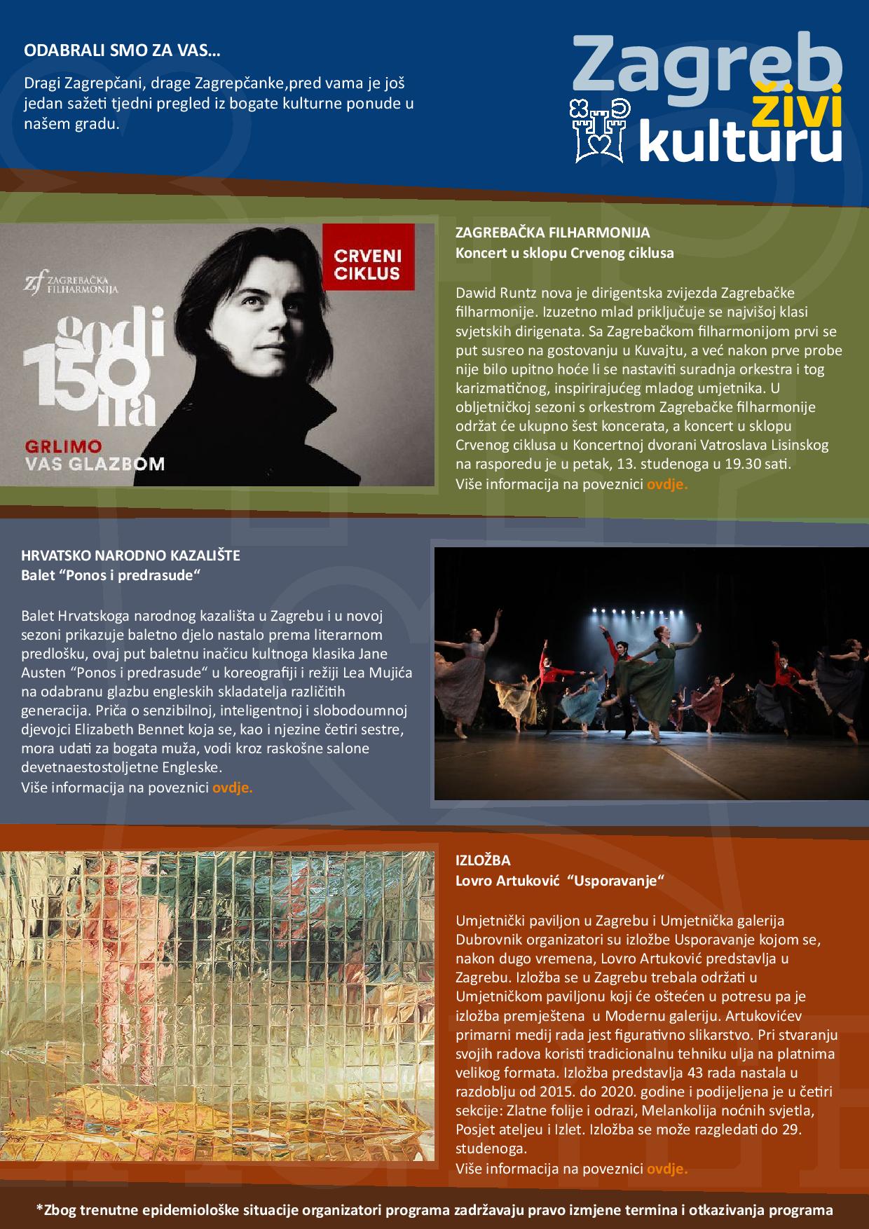 Zagreb živi kulturu – Tjedni pregled kulturne ponude (9.11.2020. do 15.11.2020.)
