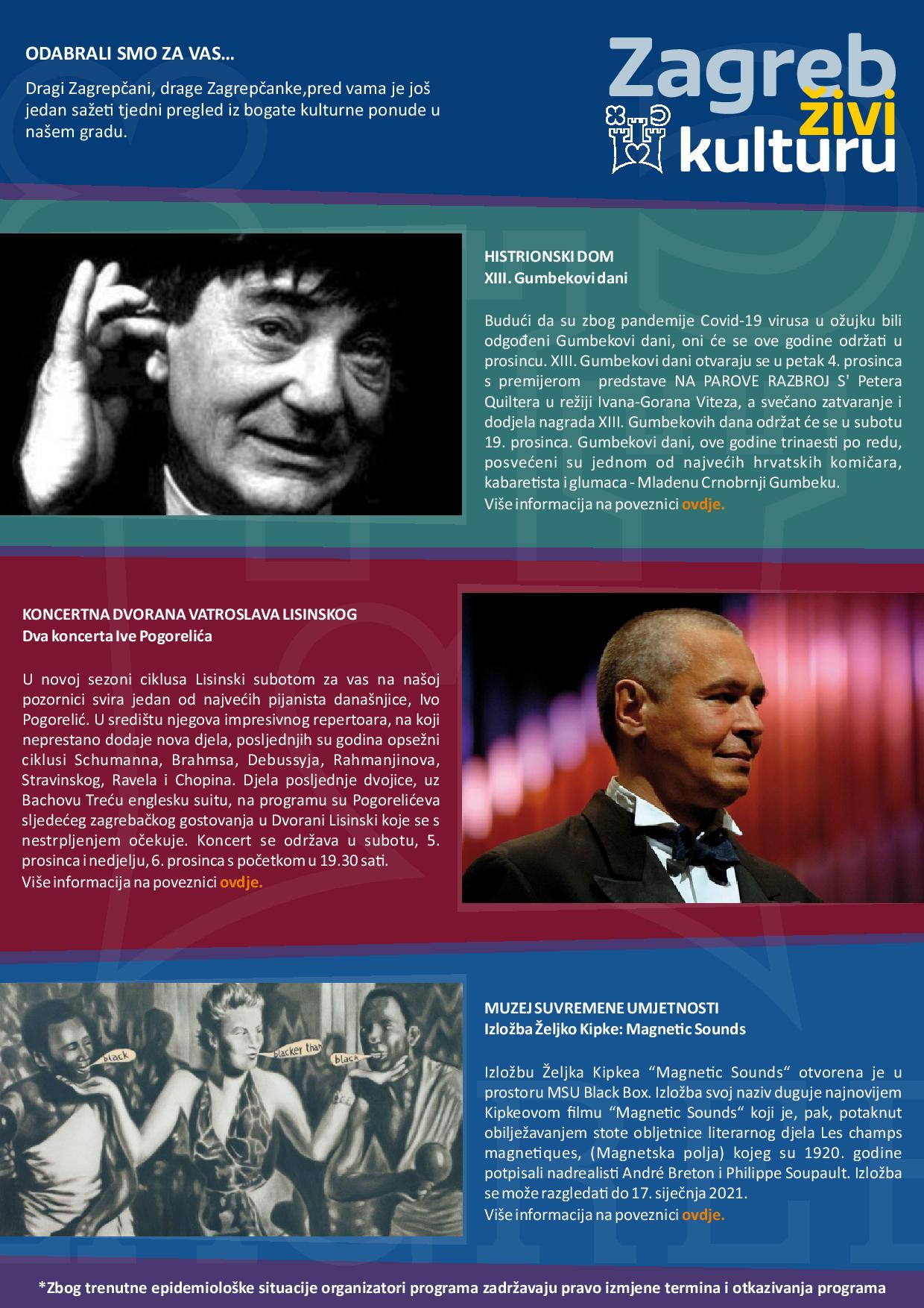 Zagreb živi kulturu – Tjedni pregled kulturne ponude (30.11.2020. do 6.12.2020.)