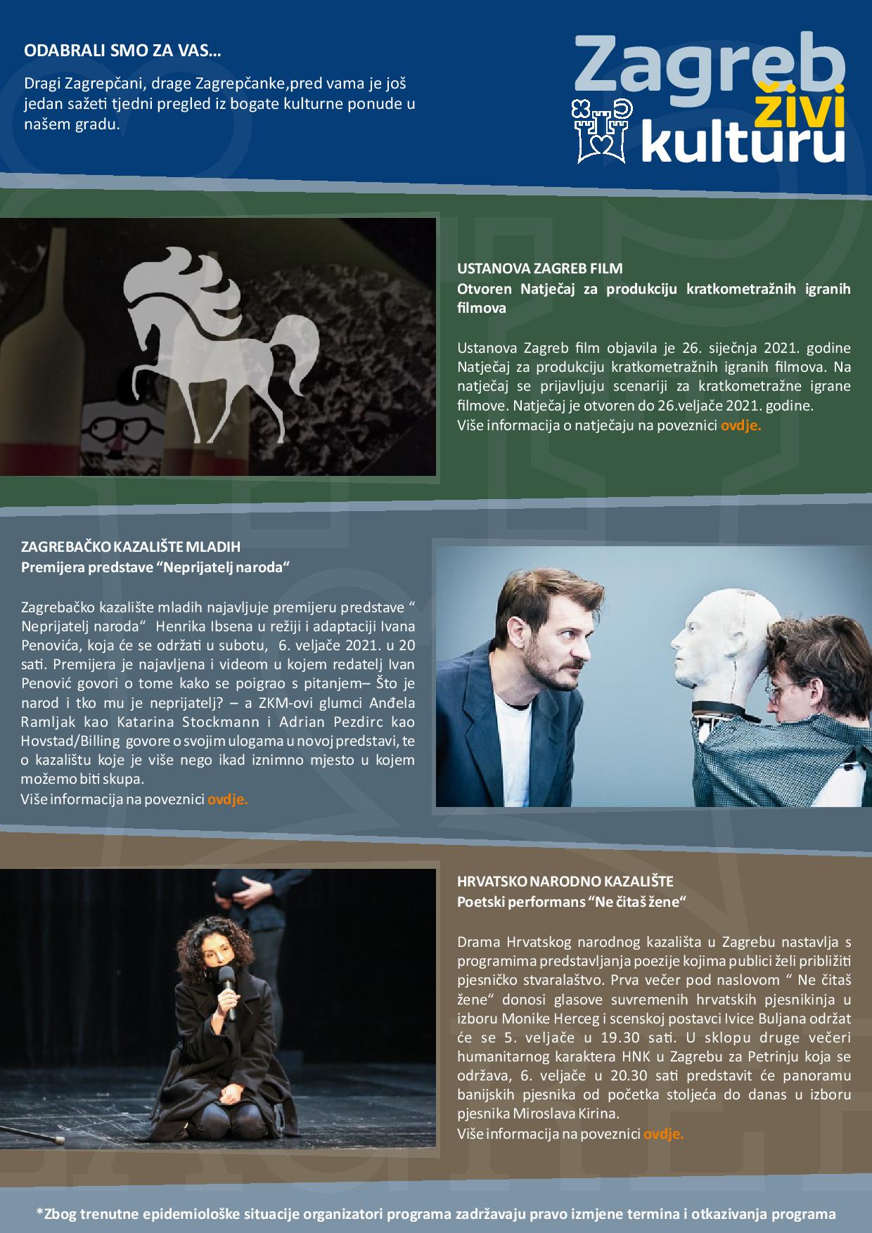 Zagreb živi kulturu – tjedni pregled kulturne ponude (1.2.-7.2.2021.)