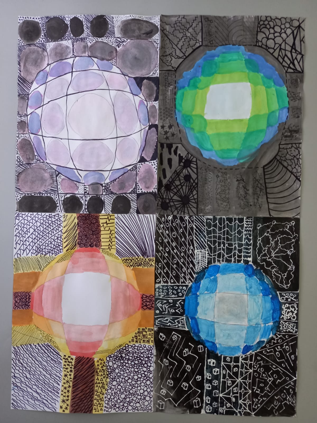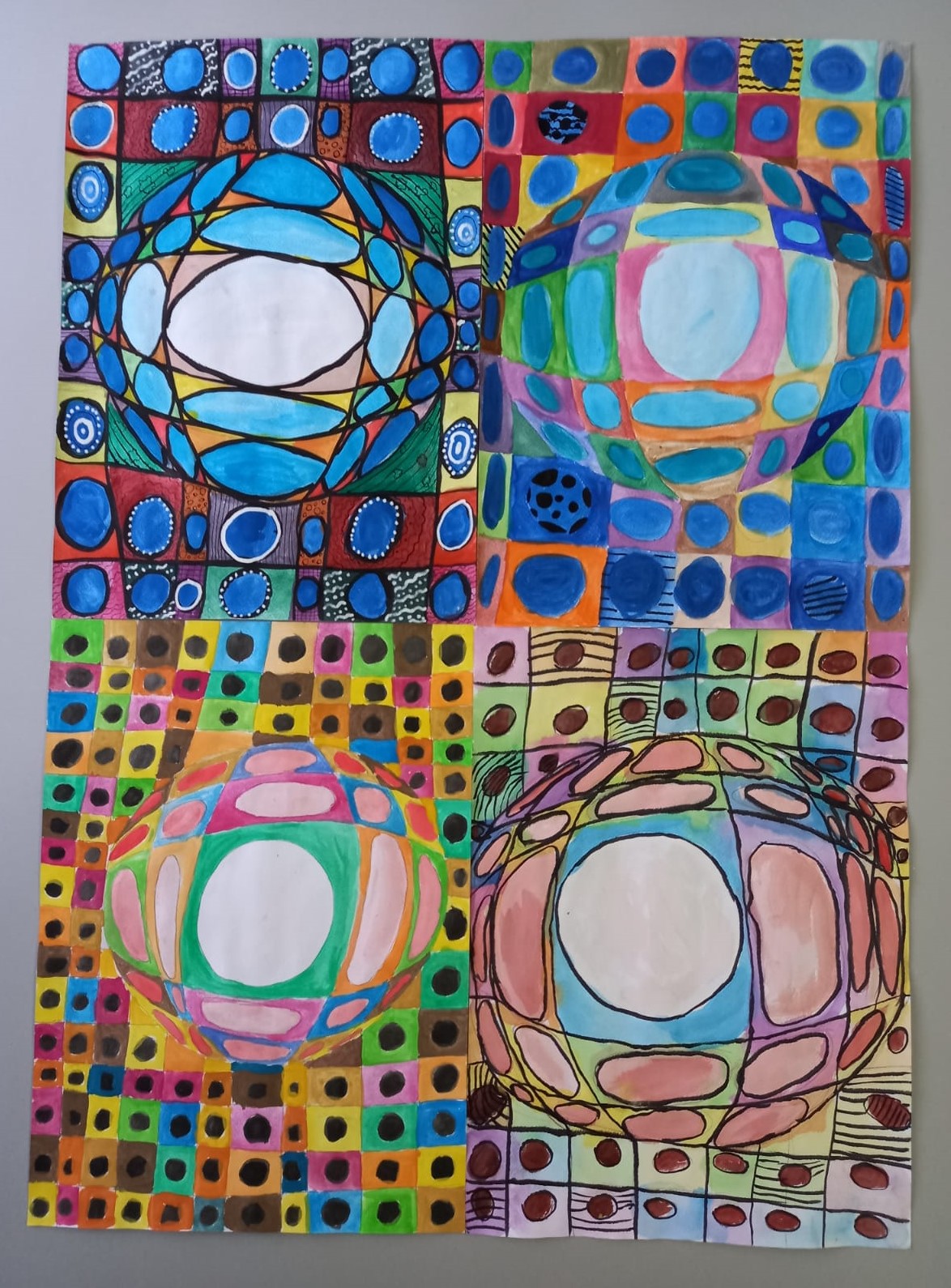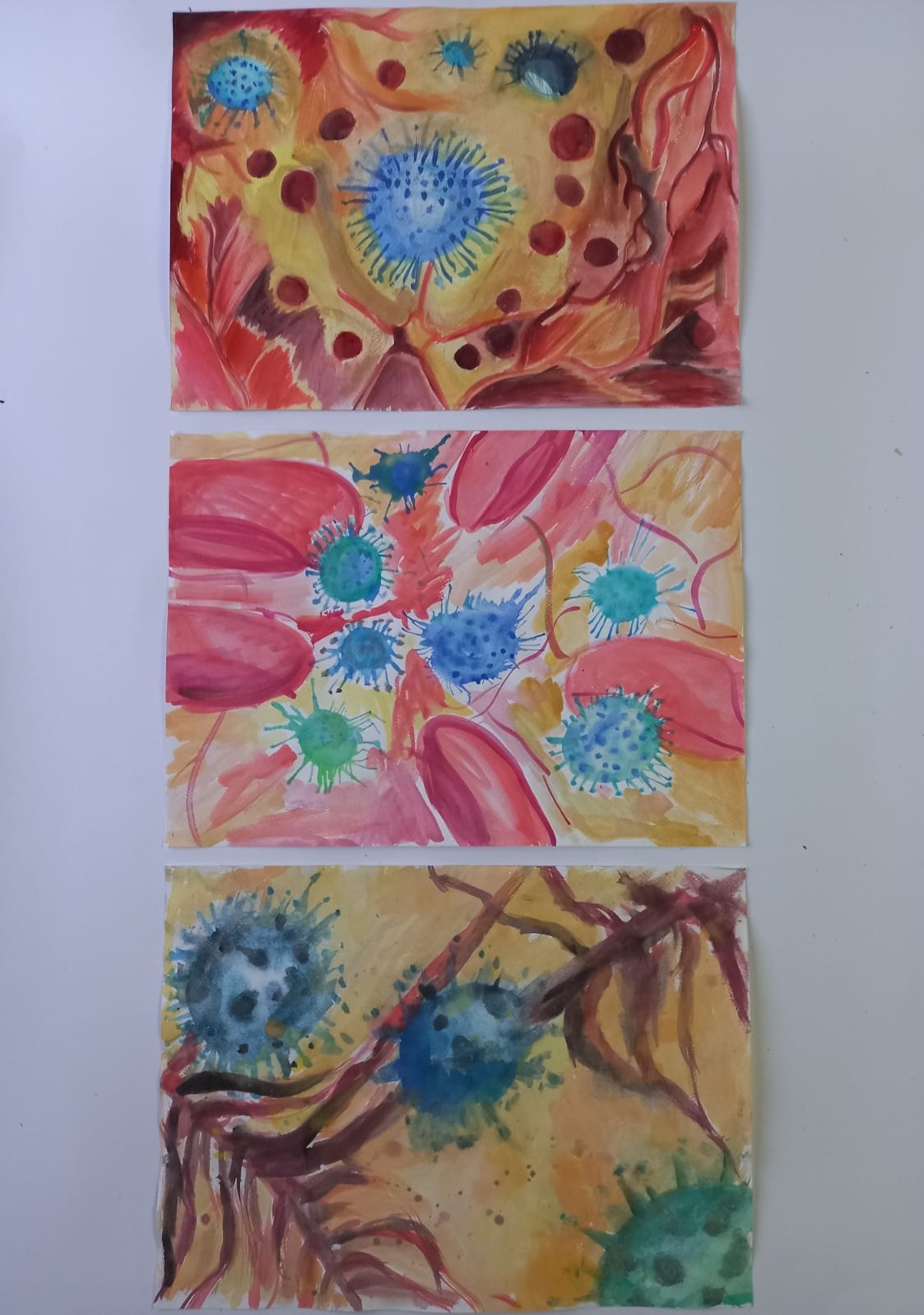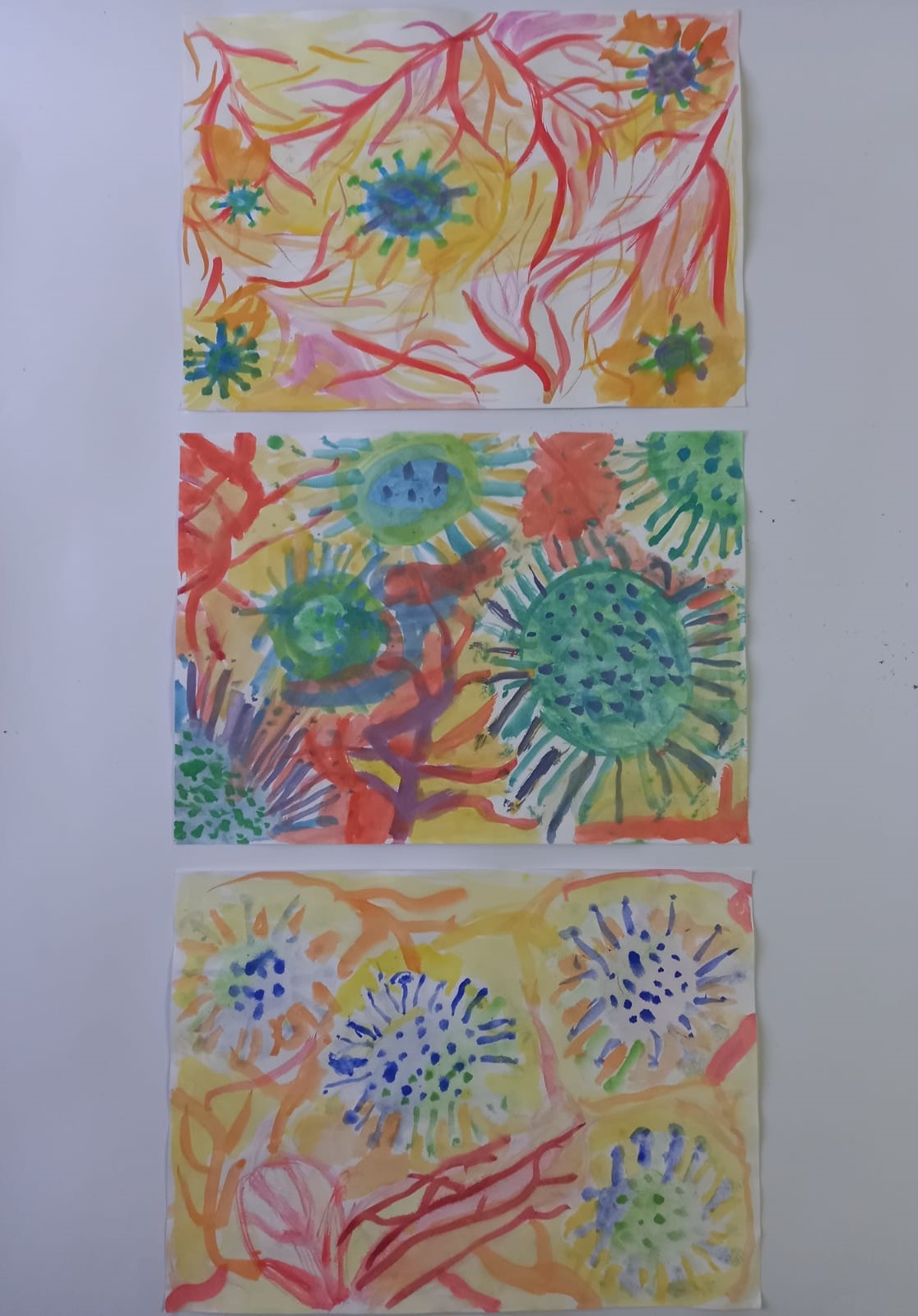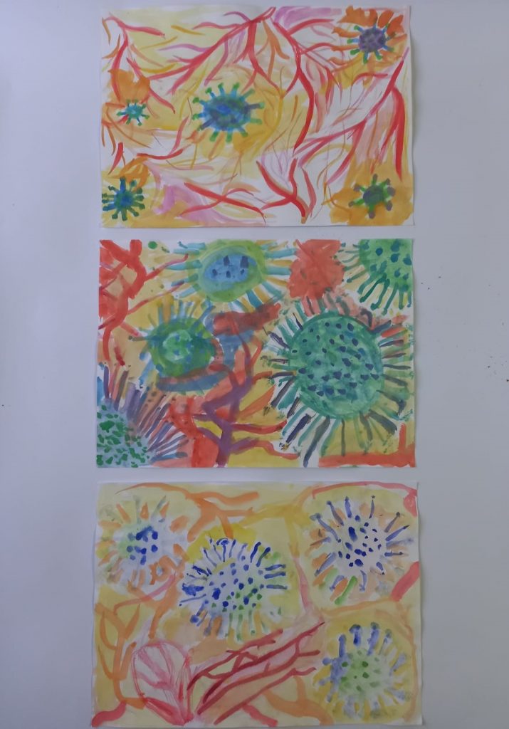 Na izložbi su izloženi radovi učenika 5. i 6. razreda u kombiniranim slikarskim tehnikama.
