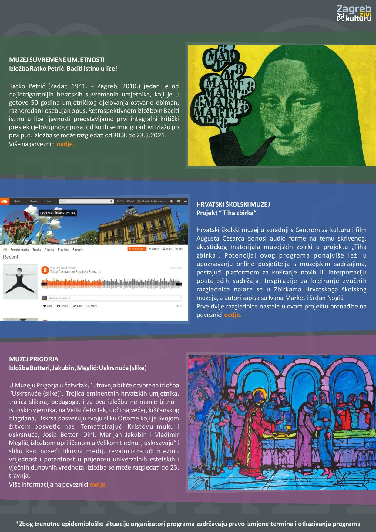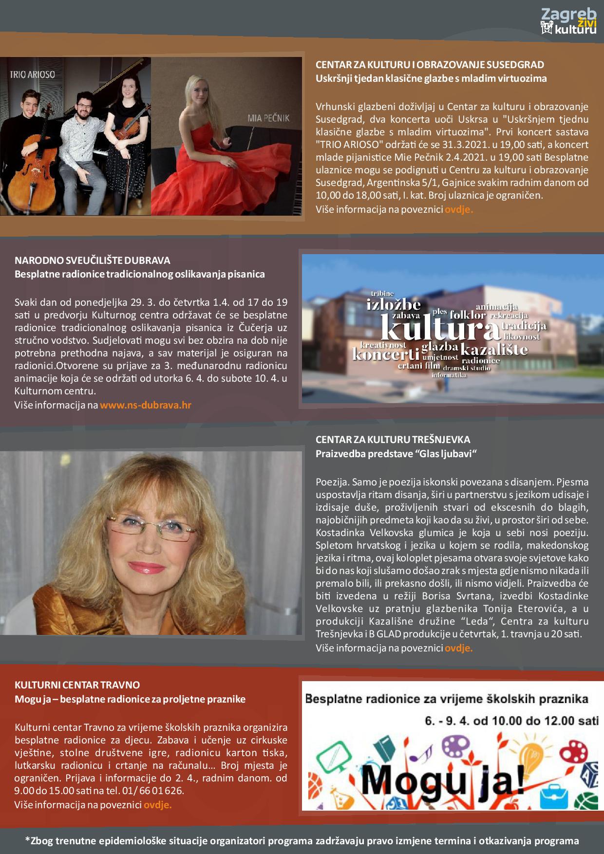 Zagreb živi kulturu – tjedni pregled kulturne ponude (29.3.-4.4.2021.)
