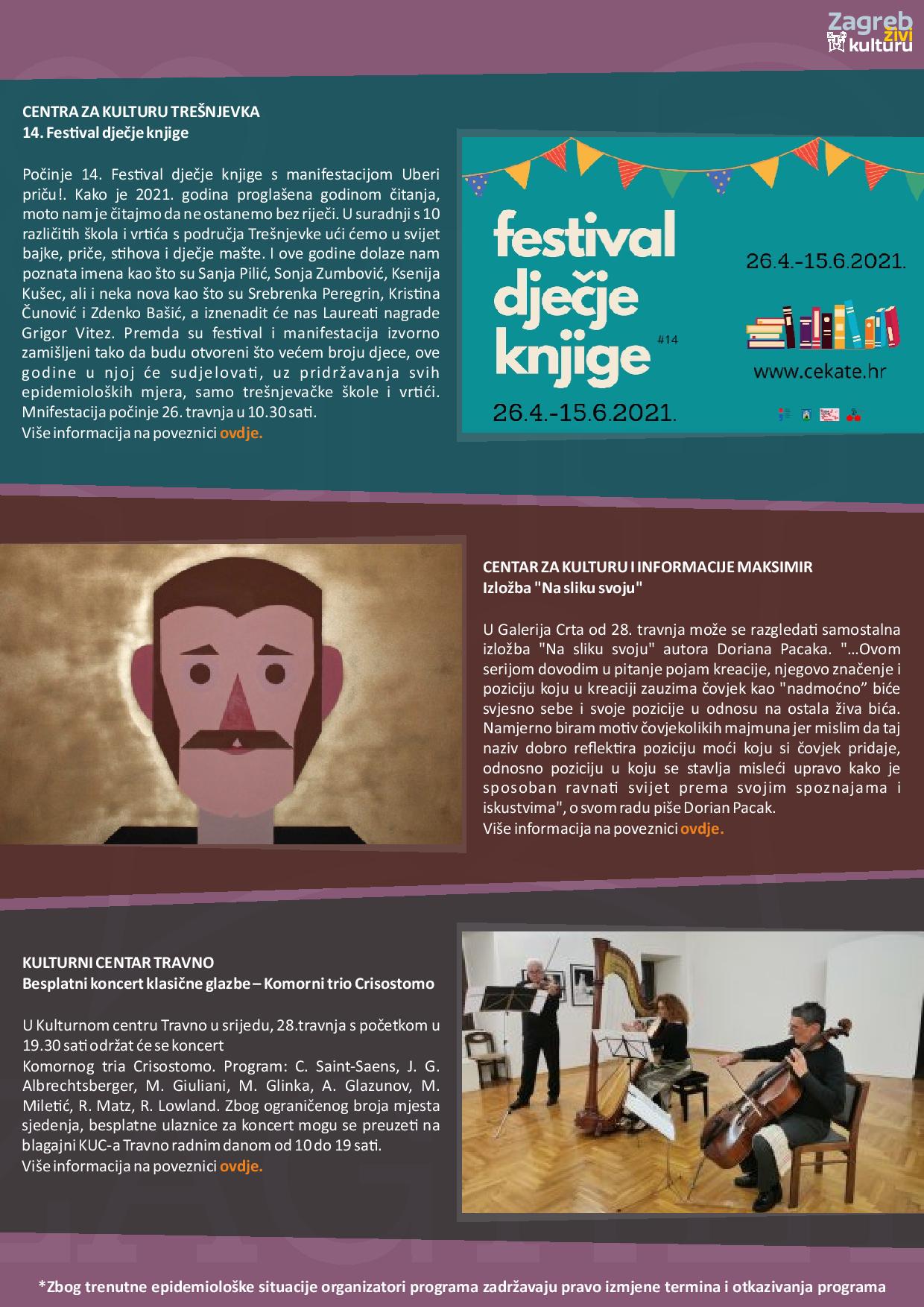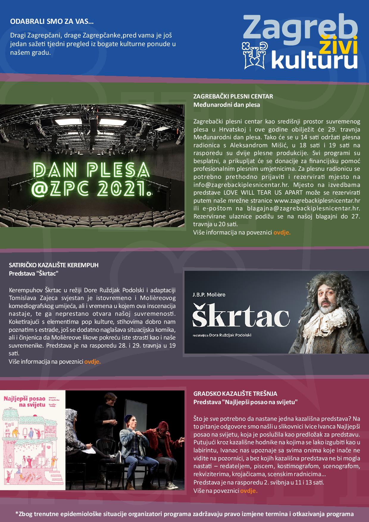 Zagreb živi kulturu – tjedni pregled kulturne ponude (26.4.-1.5.2021.)