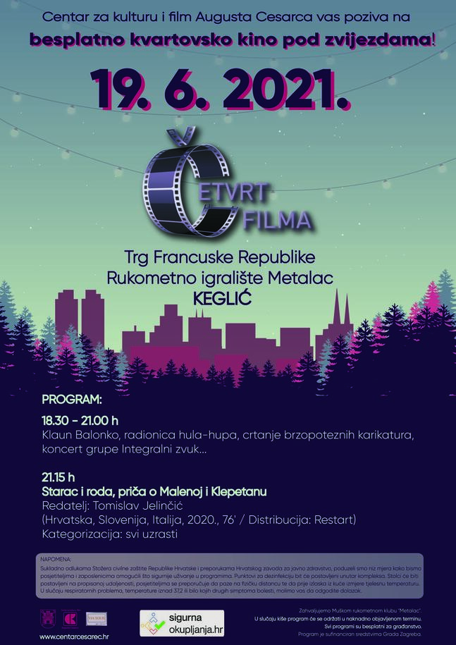 Centar za kulturu i film Augusta Cesarca vas poziva na besplatno kvartovsko kino pod zvijezdama