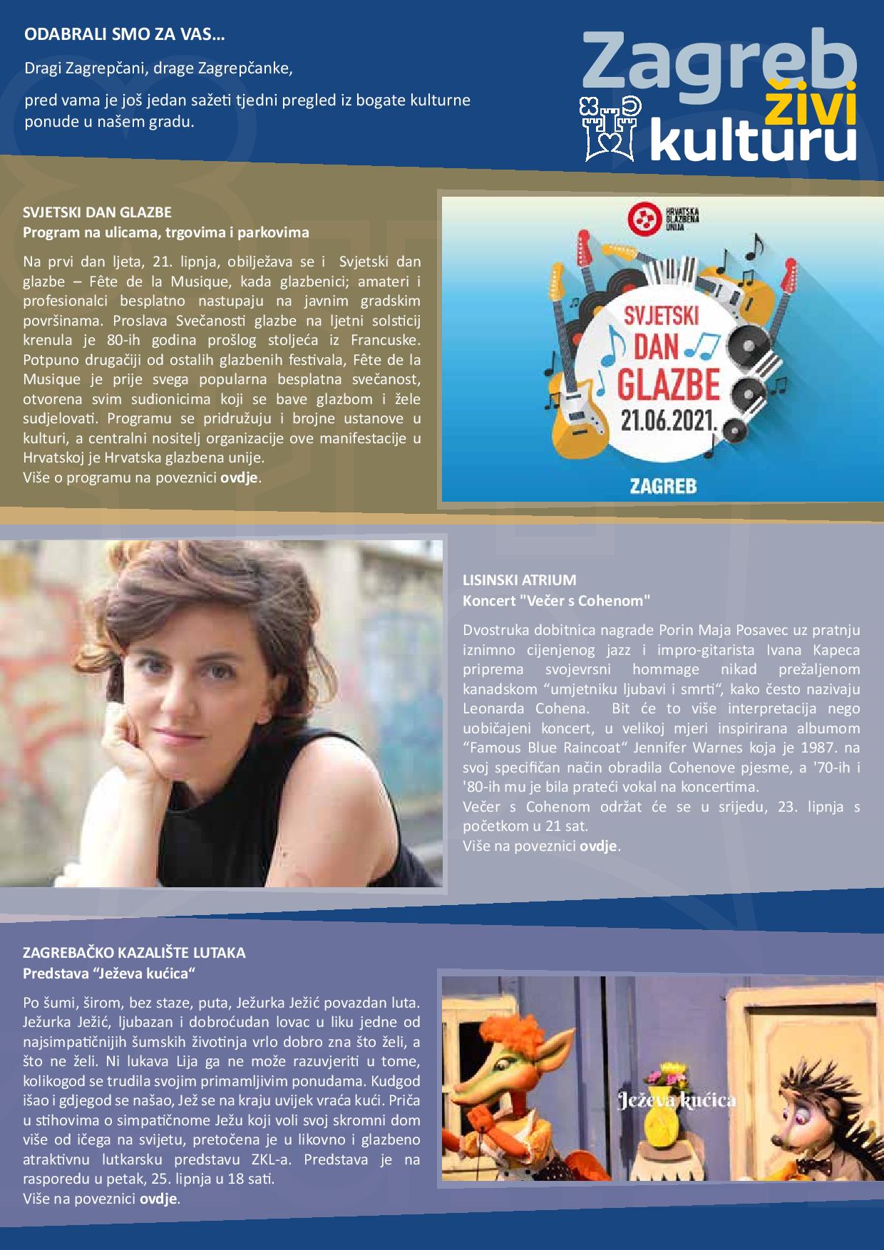Zagreb živi kulturu – tjedni pregled kulturne ponude (21.06.-27.06.2021.)
