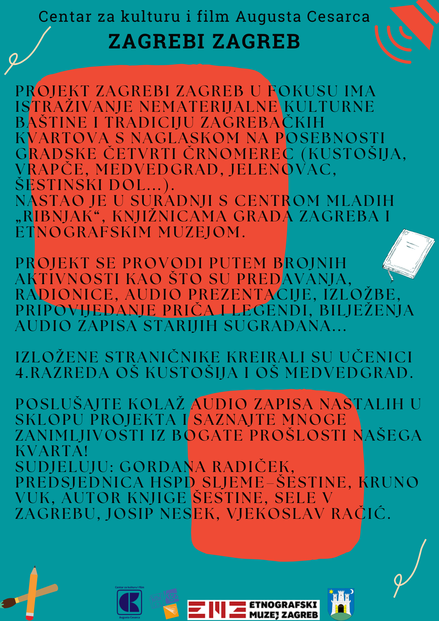 Projekt Zagrebi Zagreb nastao je u suradnji s Centrom mladih „Ribnjak“, Knjižnicama grada Zagreba i Etnografskim muzejom.