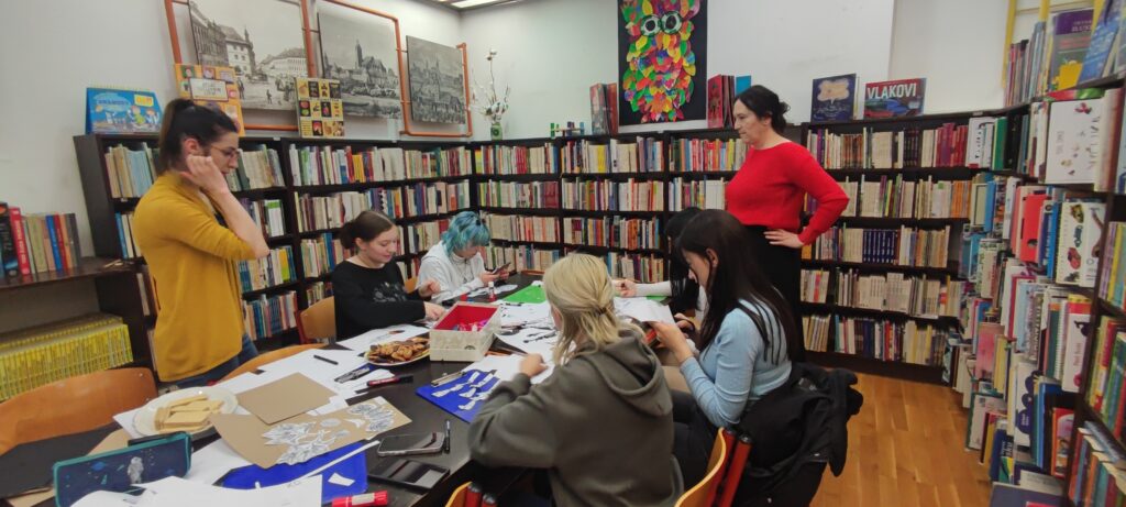 Sudjelovali učenici Škole za medicinske sestre Vinogradska i knjižničarka Milica Mikecin. Voditeljica radionice Eva Herceg.