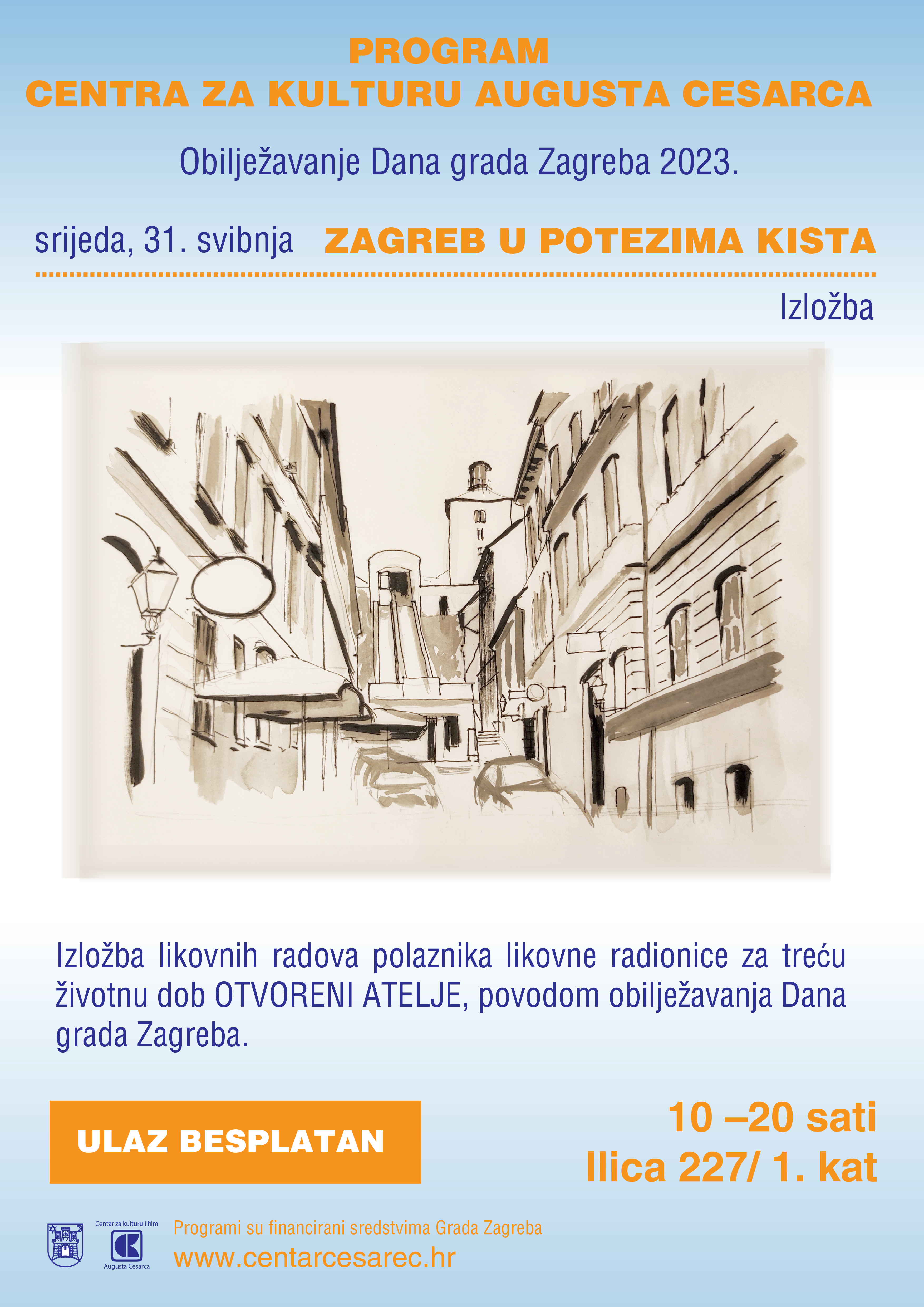 Izložba radova polaznika likovne radionice za treću životnu dob OTVORENI ATELJE, povodom obilježavanja Dana grada Zagreba.