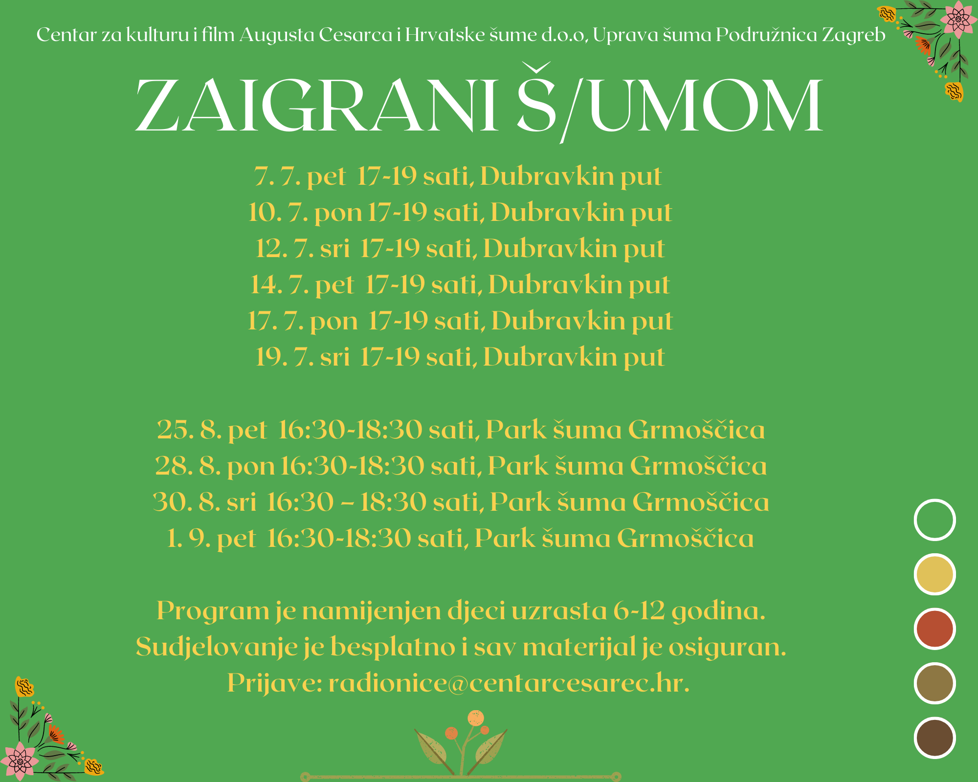 Projekt Zaigrani š/umom realizira se u suradnji Centra za kulturu i film Augusta Cesarca i Hrvatskih šuma, d.o.o., Uprava šuma Podružnica Zagreb.