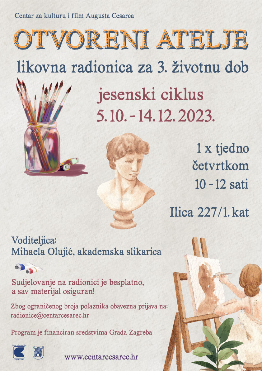 Centar za kulturu i film Augusta Cesarca poziva na nastavak kreativnih susreta na likovnoj radionici za treću životnu dob Otvoreni atelje