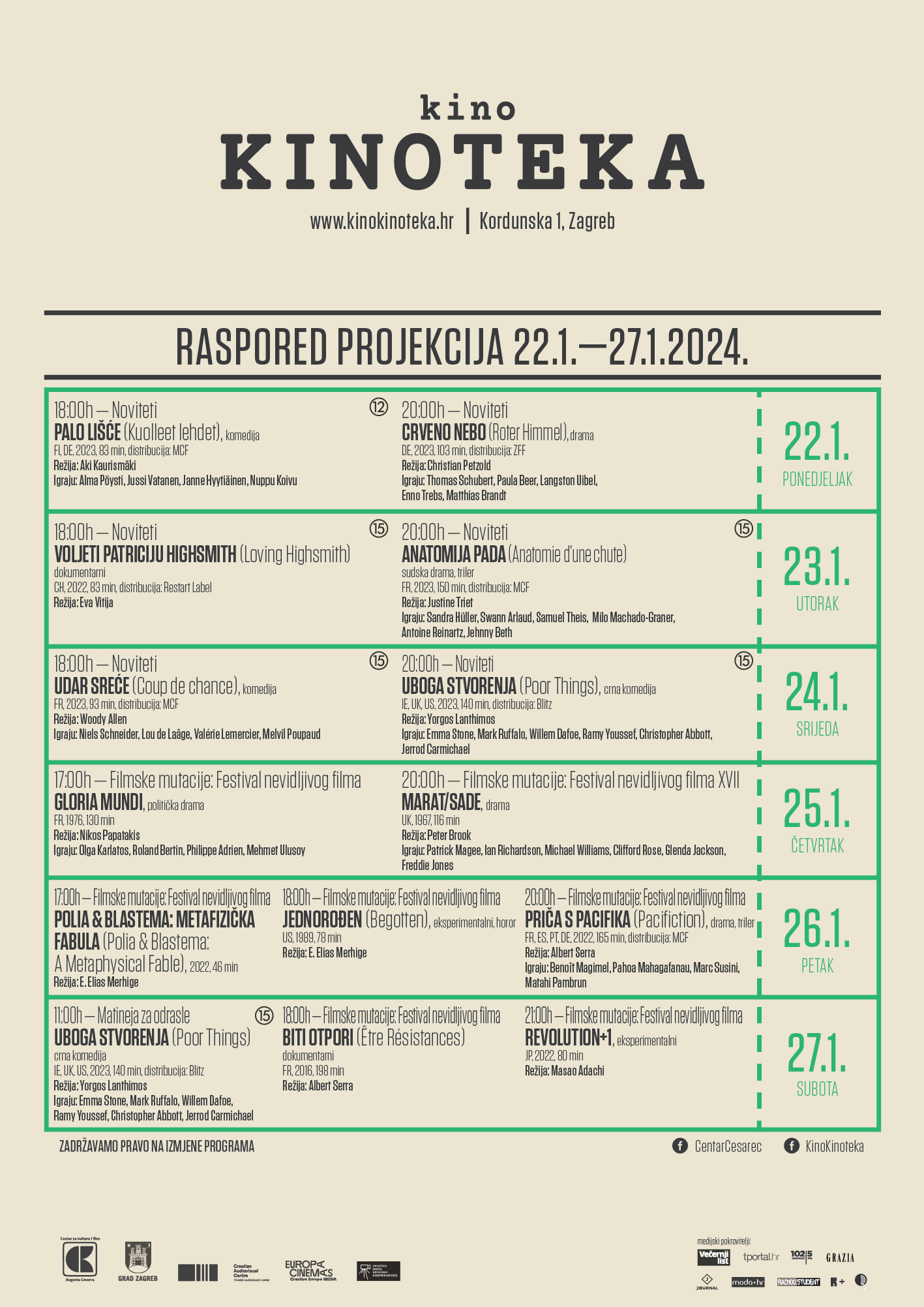 Raspored projekcija: www.kinokinoteka.hr