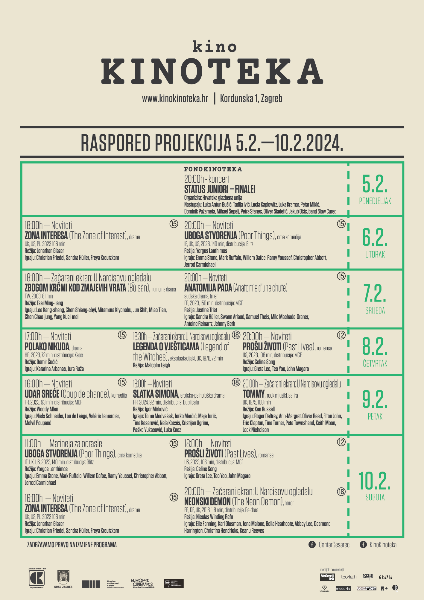 Raspored projekcija: www.kinokinoteka.hr