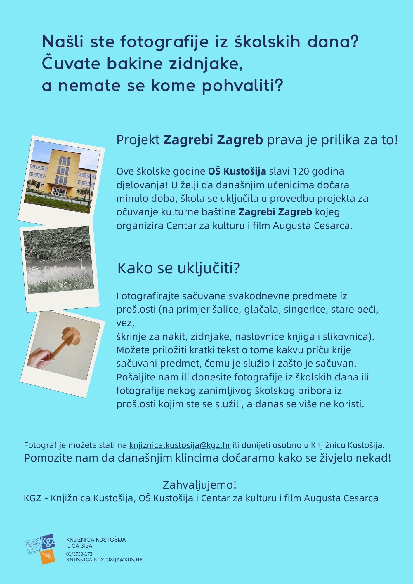 Fotografije pošaljite na mail knjiznica.kustosija@kgz.hr ili donesite osobno u Knjižnicu Kustošija, Ilica 312 a.