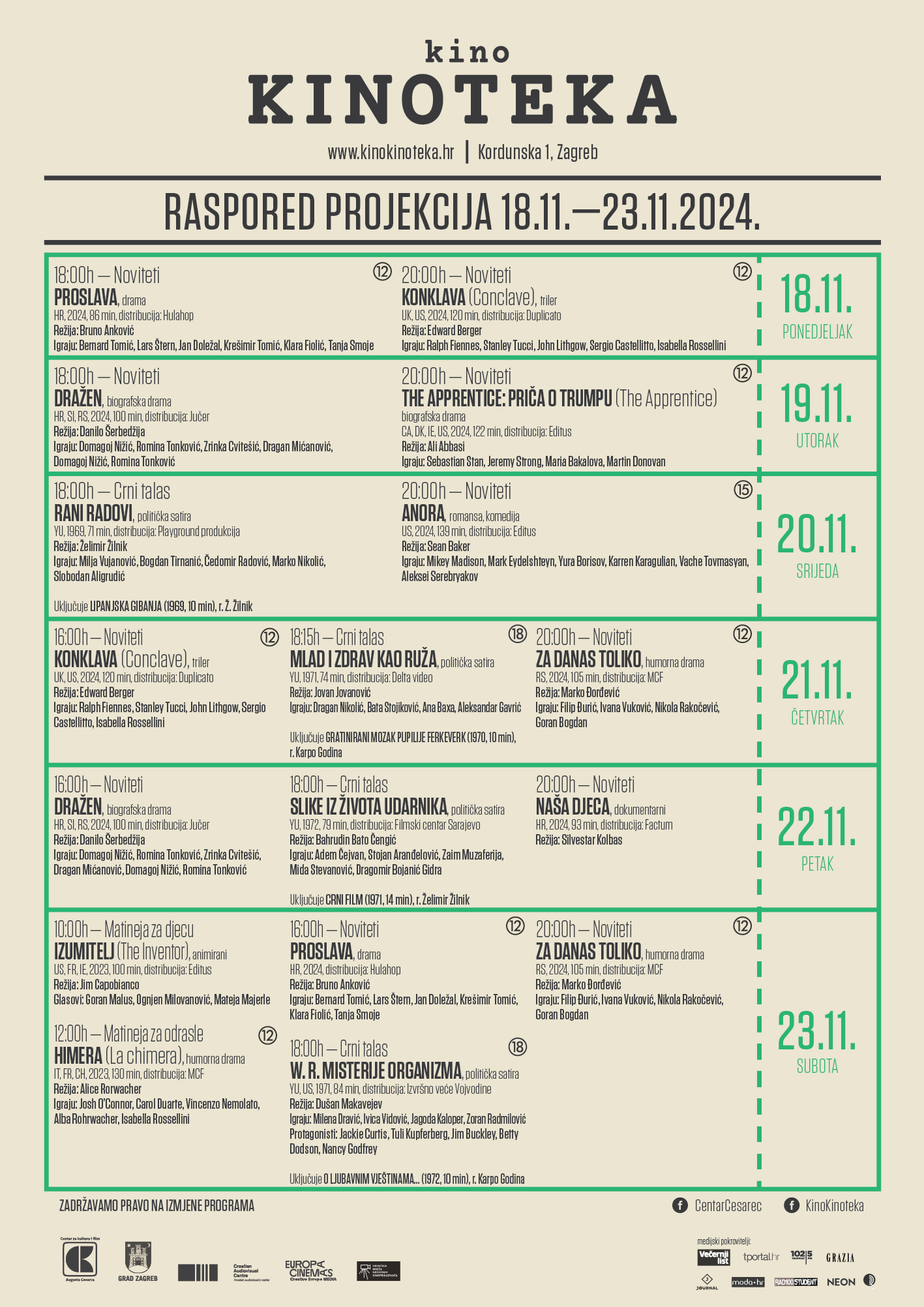 Među ostalim novitetima pogledajte Zlatnom palmom nagrađenu komediju Anora Seana Bakera, pobjednicu Pulskog festivala Proslava Brune Ankovića, uzbudljivi triler Konklava Edwarda Bergera te biografske drame Dražen Danila Šerbedžije i The Apprentice: Priča o Trumpu Alija Abbasija.