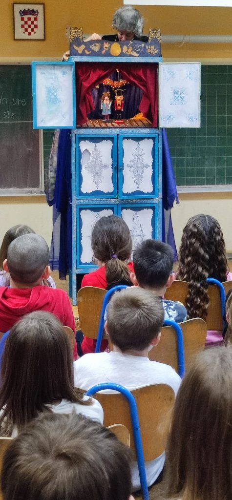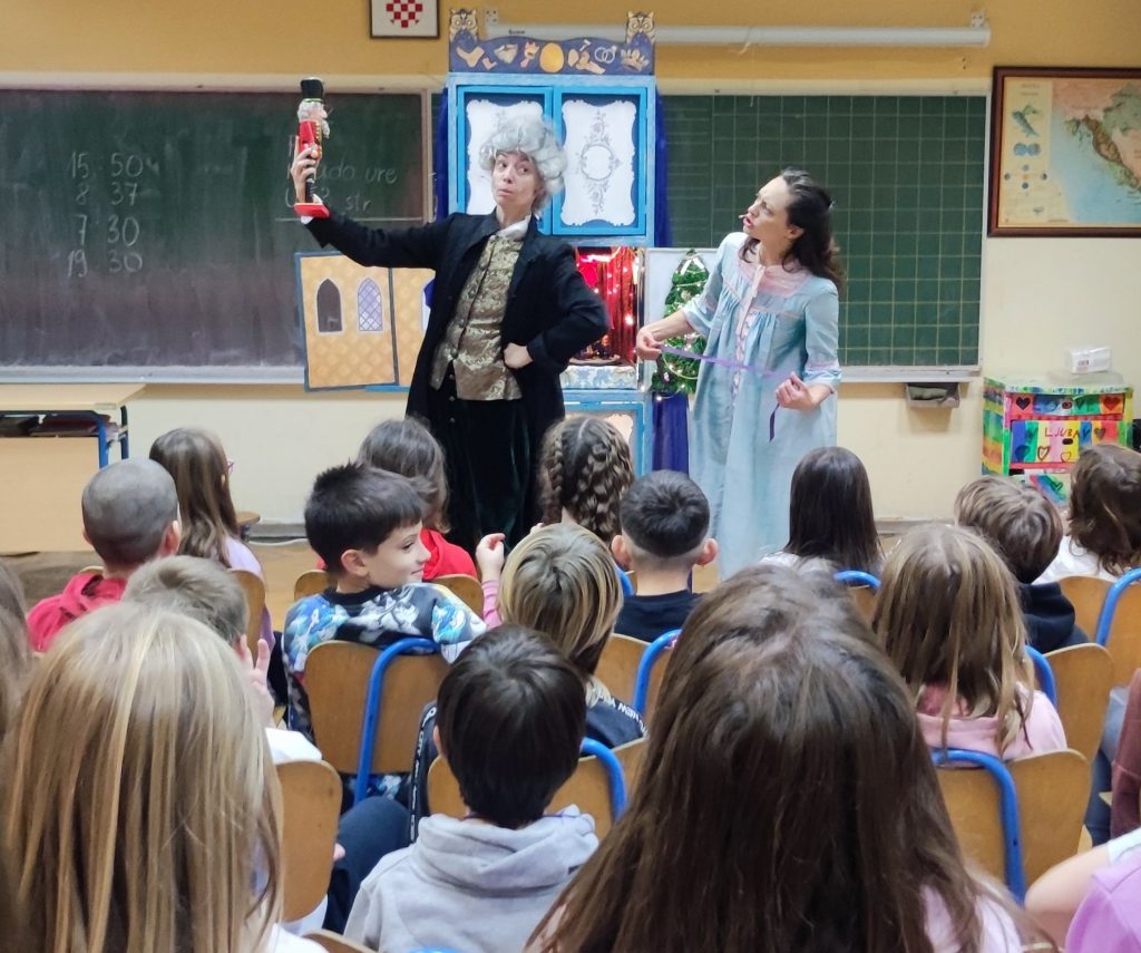Advent smo započeli suradnjom s LOFT – lutkarskom organizacijom koju fakat trebamo i izvedbom lutkarsko-glumačke predstave Orašar i Mišonja u područnoj školi OŠ Kustošija.