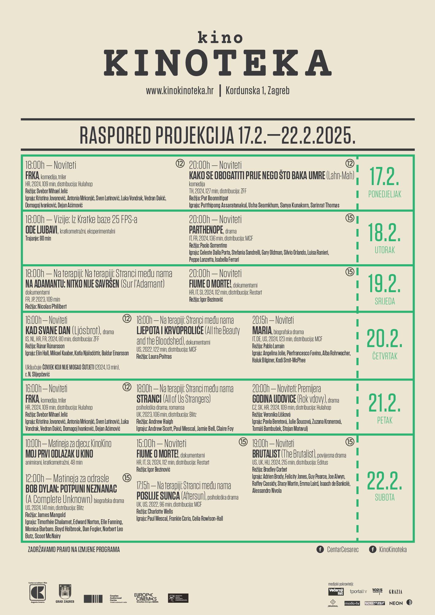 Raspored projekcija: KinoKinoteka