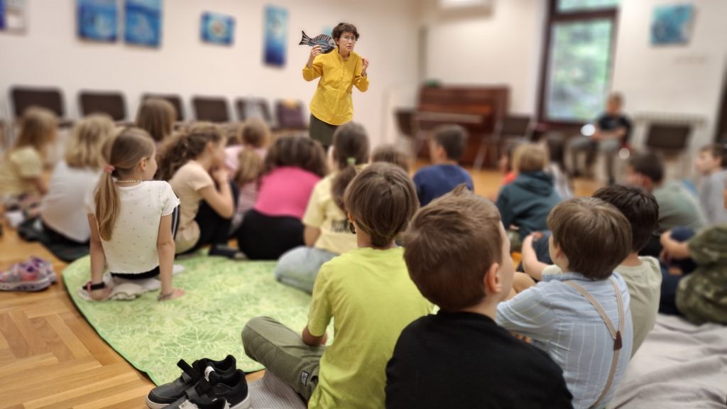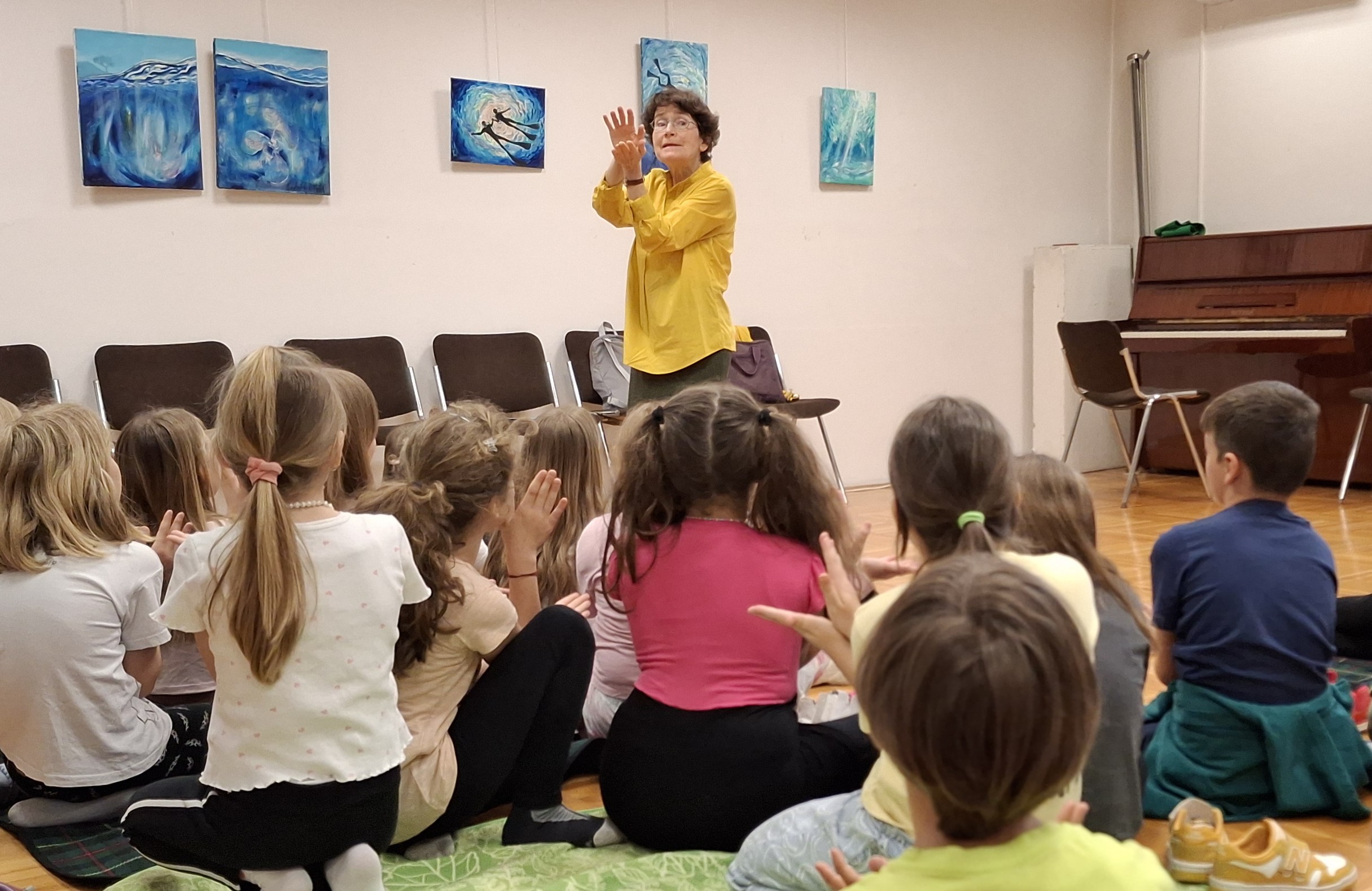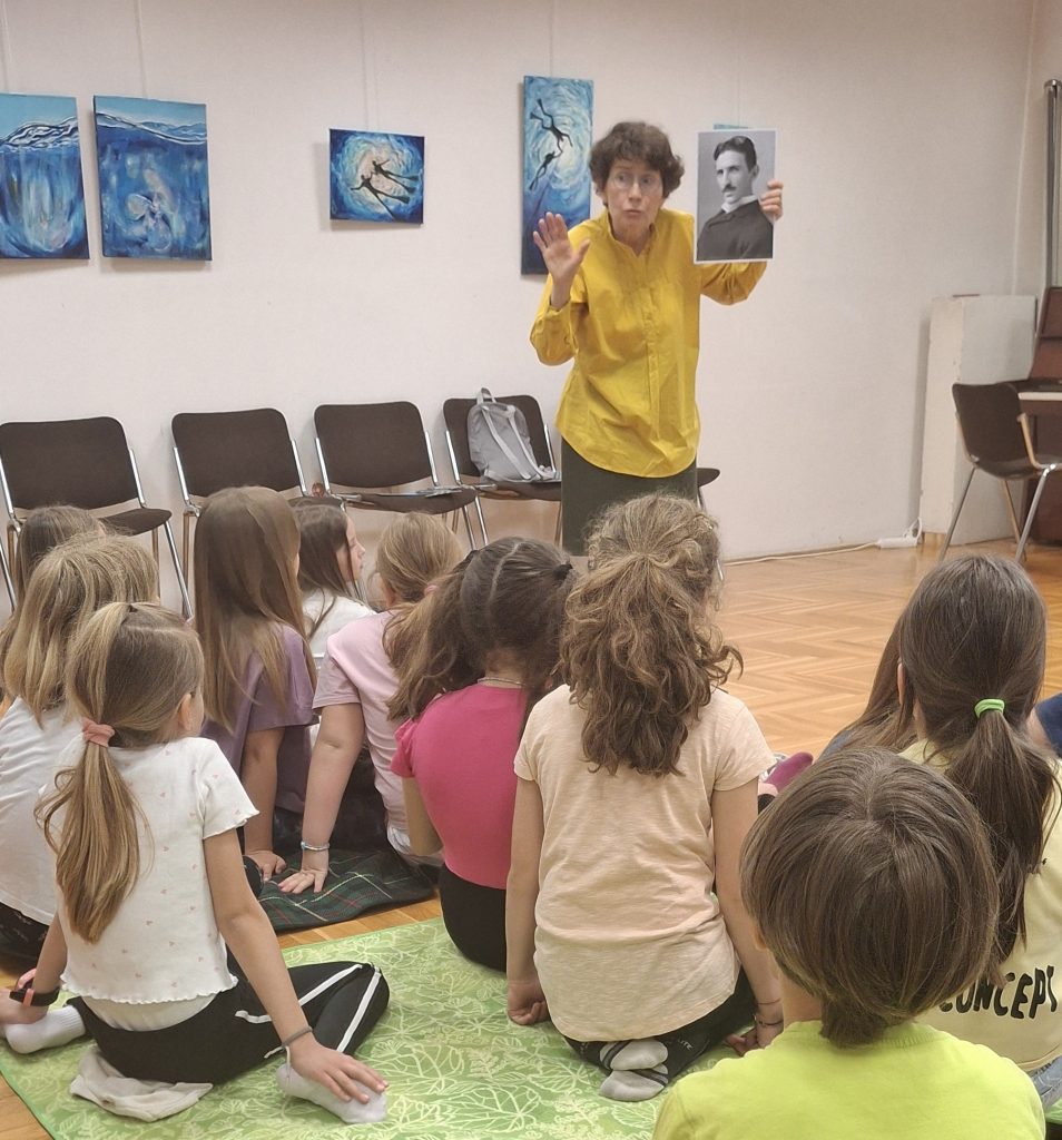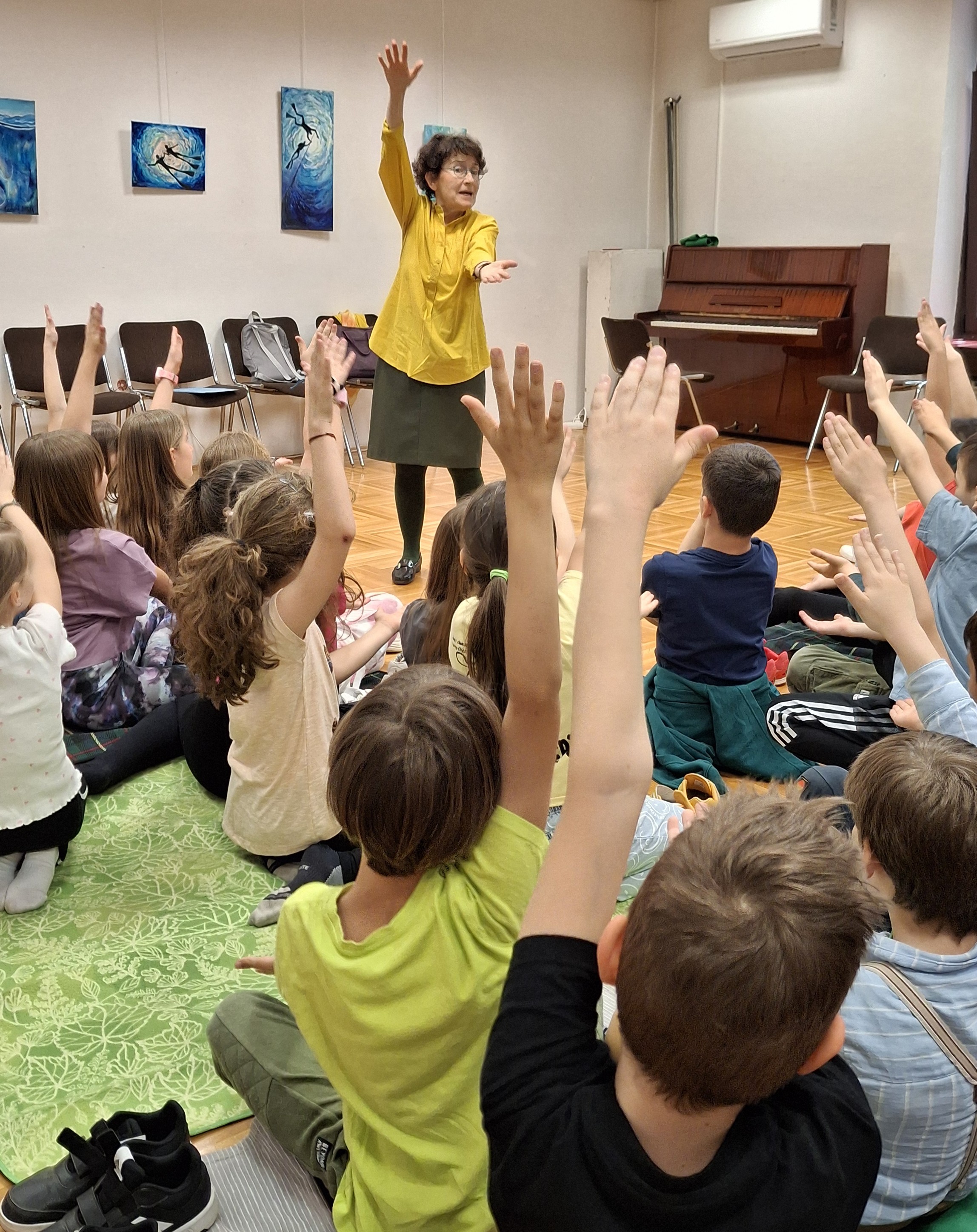 Nezaboravno druženje s književnicom Željkom Horvat, krokodilima, ribama, leptirima, jaguarom, u ritmu pianina, frulice i drvenih štapića i uz mudrosti Nikole Tesle, Alberta Einsteina i Leonarda da Vincija. Sudjelovali učenici 2. a i c razreda OŠ Medvedgrad.