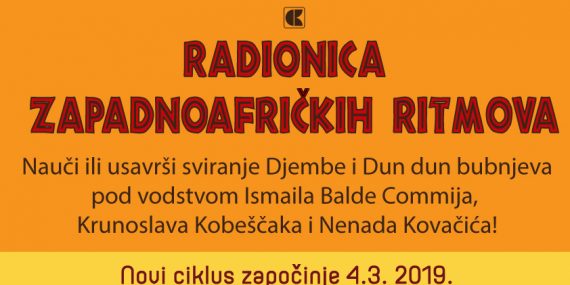 Pozivamo vas na susret s izvornom tradicijskom afričkom glazbom i ritmovima čiji temeljni zvuk kreiraju bubnjevi! Gotov je još jedan ciklus radionica zapadnoafričkih ritmova! Polaznici radionice će prezentirati naučene ritmove […]