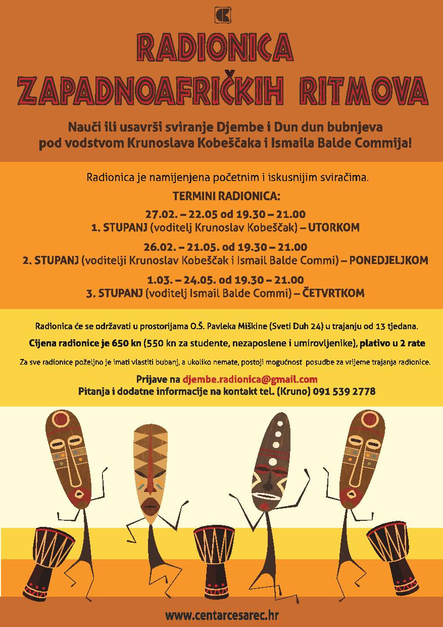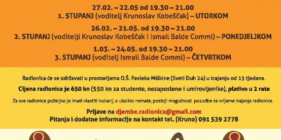 Pozivamo vas na susret s izvornom tradicijskom afričkom glazbom i ritmovima čiji temeljni zvuk kreiraju bubnjevi! Gotov je još jedan ciklus radionica zapadnoafričkih ritmova! Polaznici radionice će prezentirati naučene ritmove […]