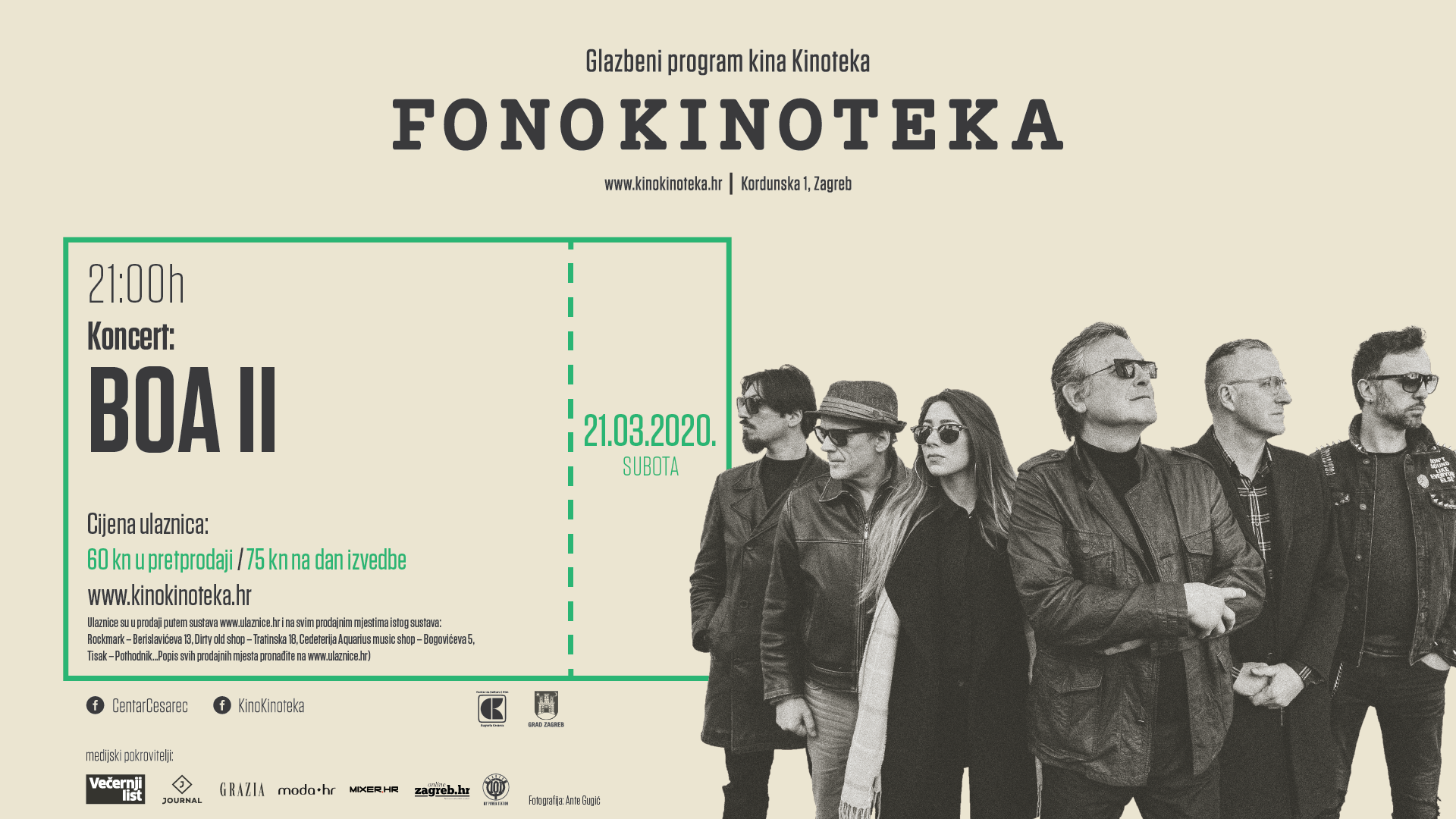 Na koncertu u kinu Kinoteka izvodit će hitove poput Tako lijepa i Svi tvoji poljupci Novo izdanje FonoKinoteke, glazbenog programa kina Kinoteka ugostit će 21. ožujka zagrebački art rock sastav Boa II koji slijedi glazbenu […]