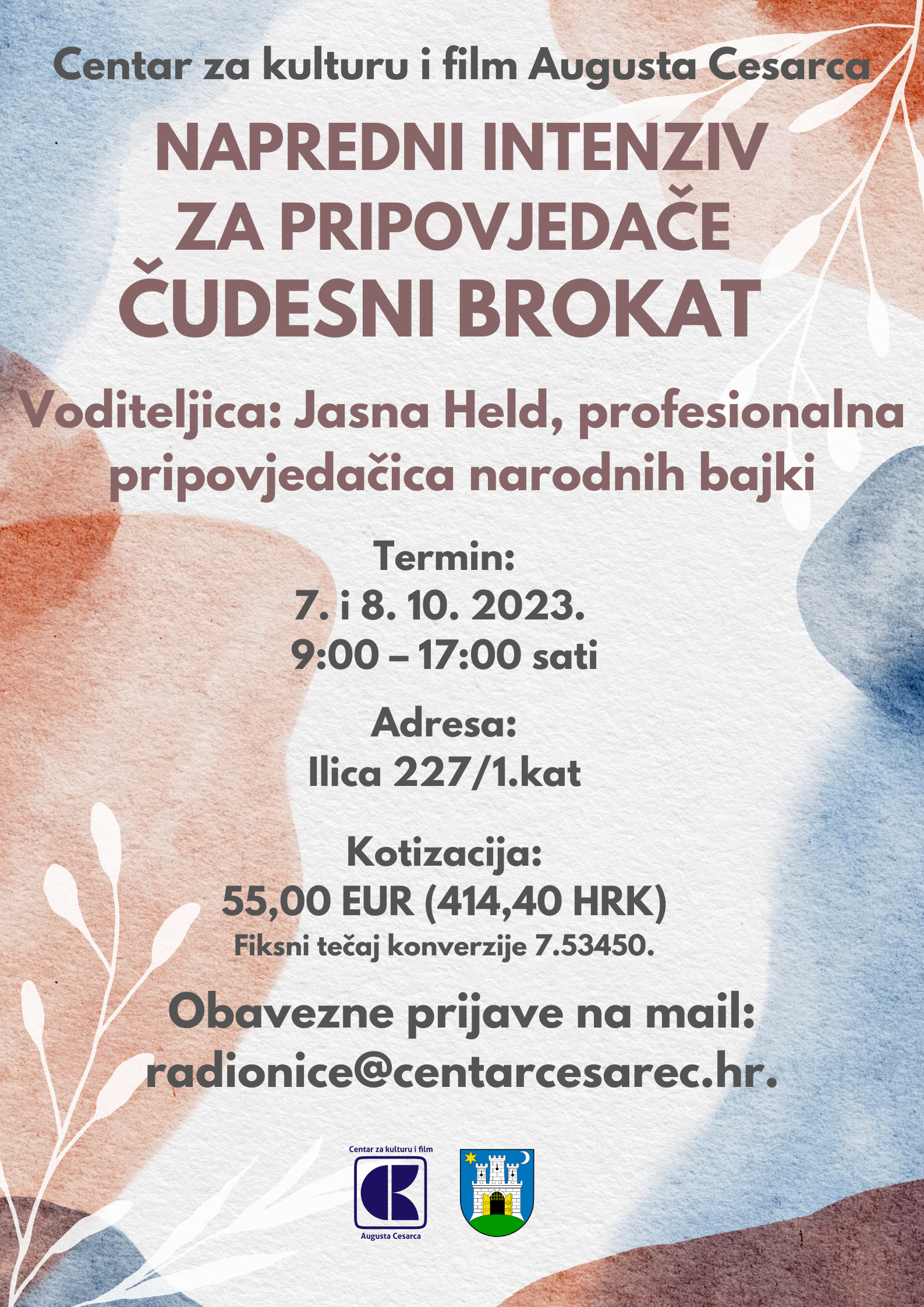 Centar za kulturu i film Augusta Cesarca najavljuje napredni intenziv za pripovjedače Č𝐔D𝐄S𝐍I B𝐑O𝐊A𝐓 autorice i voditeljice Jasne Held! Intenziv je zamišljen kao poticaj pedagozima, nastavnicima, profesorima, studentima, kao i roditeljima, u […]