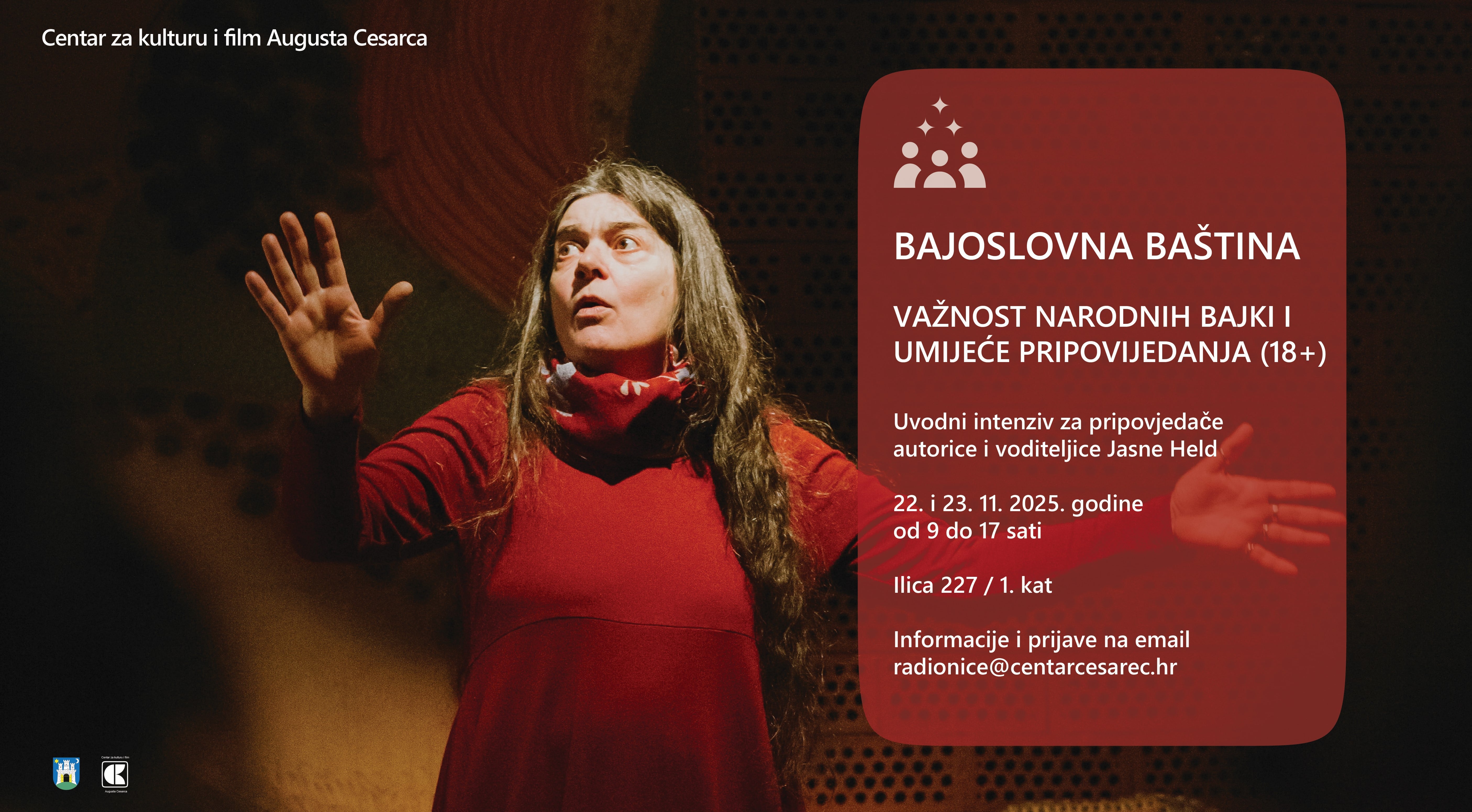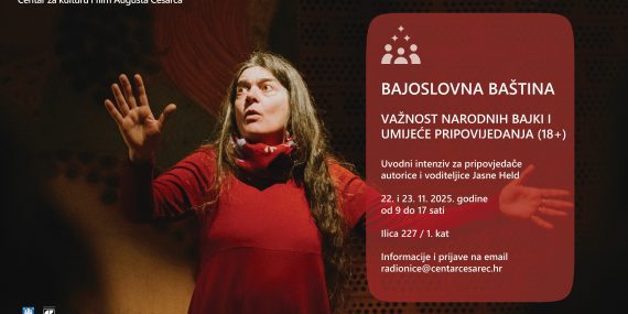 UVODNI INTENZIV ZA PRIPOVJEDAČE – VAŽNOST NARODNIH BAJKI I UMIJEĆE PRIPOVIJEDANJA (18+) Autorica i voditeljica Jasna Held. Intenziv je zamišljen kao poticaj pedagozima, nastavnicima, profesorima, studentima, kao i roditeljima, u radu […]