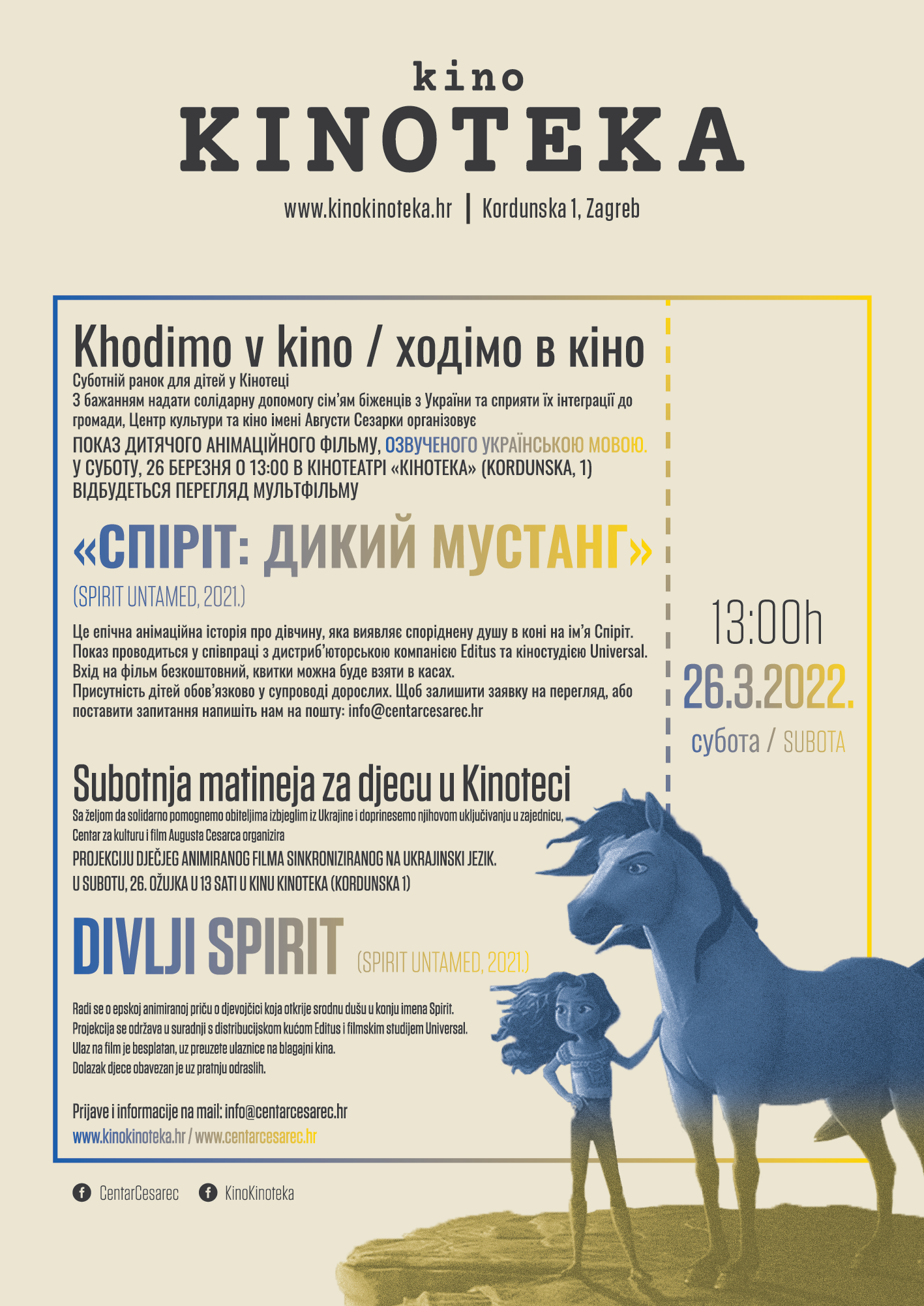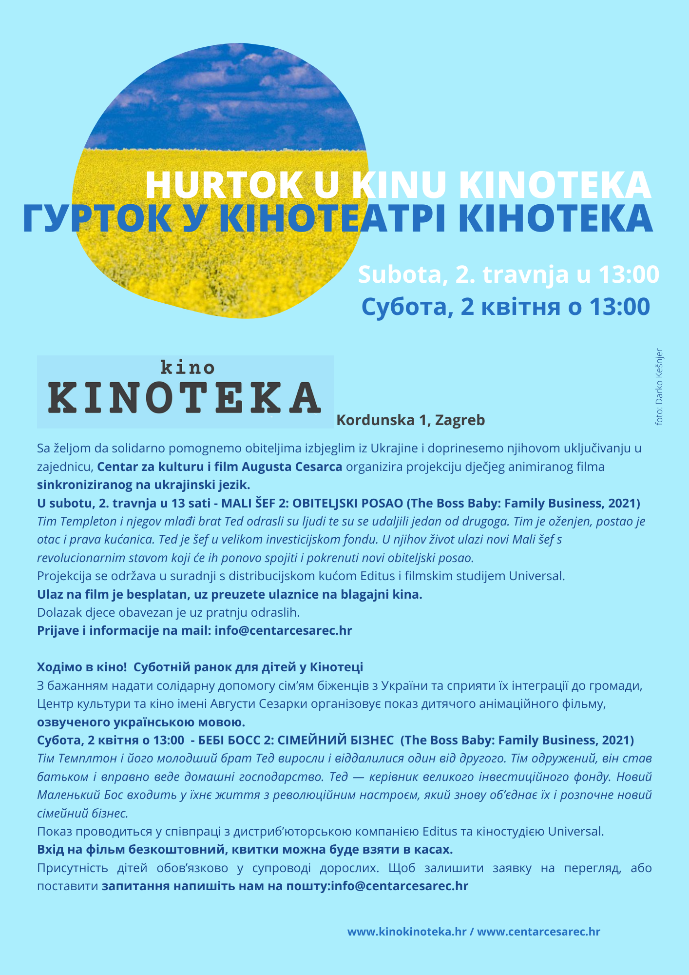 HURTOK U KINU KINOTEKA / ГУРТОК У КІНОТЕАТРІ КІНОТЕКА Subota, 2. travnja u 13:00 / Субота, 2 квітня о 13:00 Sa željom da solidarno pomognemo obiteljima izbjeglim iz Ukrajine i […]