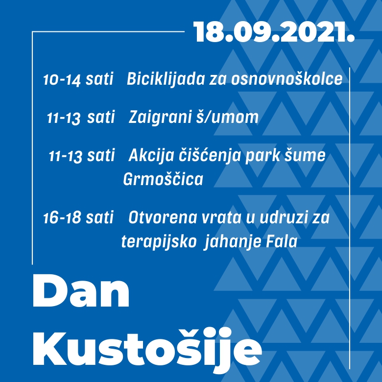 Pridružite nam se ove subote 18. rujna na eko druženju Zaigrani š/umom u sklopu obilježavanja Dana Kustošije 2021.! subota 18. 9. 11-13h Park šuma Grmoščica Program je besplatan i namijenjen […]