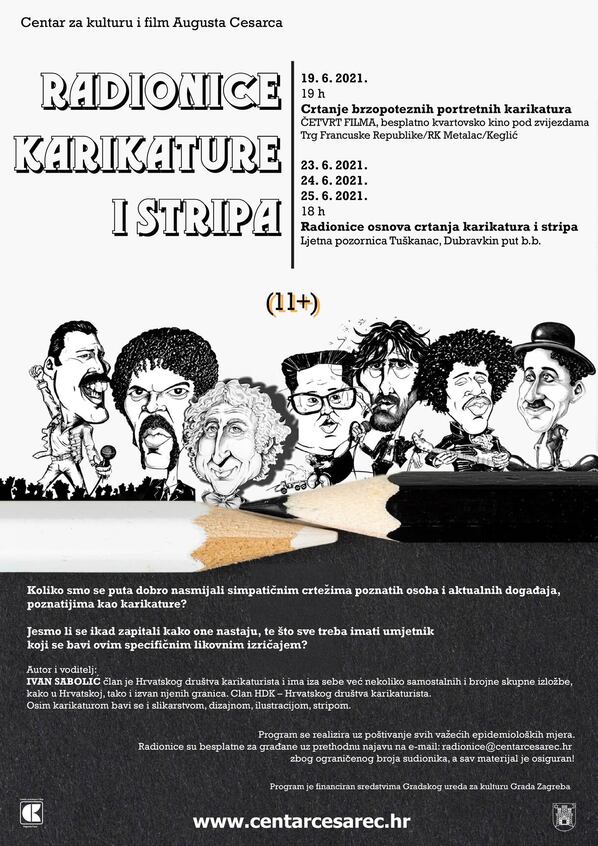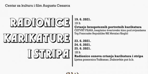 Radionice karikature i stripa 19.6. 2021. 19 h Crtanje brzopoteznih portretnih karikatura ČETVRT FILMA, besplatno kvartovsko kino pod zvijezdama Trg Francuske Republike/RK Metalac/Keglić 23.6. 2021. 24.6. 2021. 25.6. 2021. 18 […]